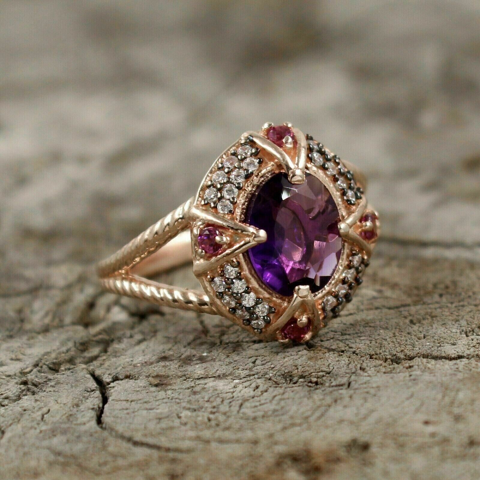 2Ct Oval Cut Lab-Created Amethyst Halo Engagement Ring 925 Sterling Silver