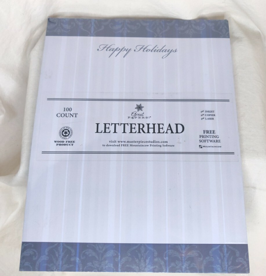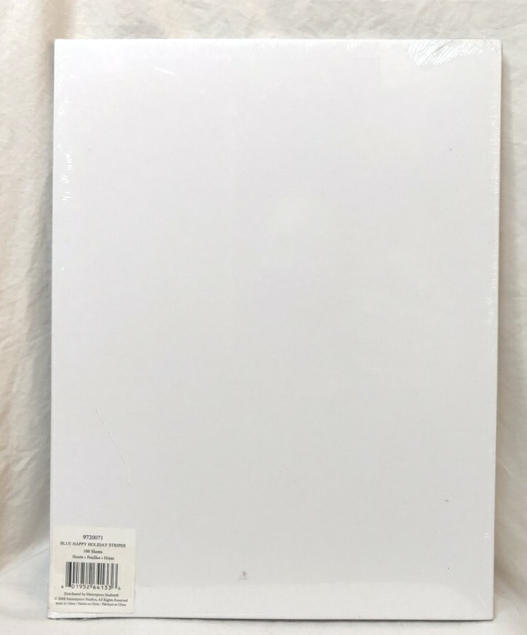 Christmas Stationary Letterhead 100 Sheets Happy Holidays Blue Stripes Elegant