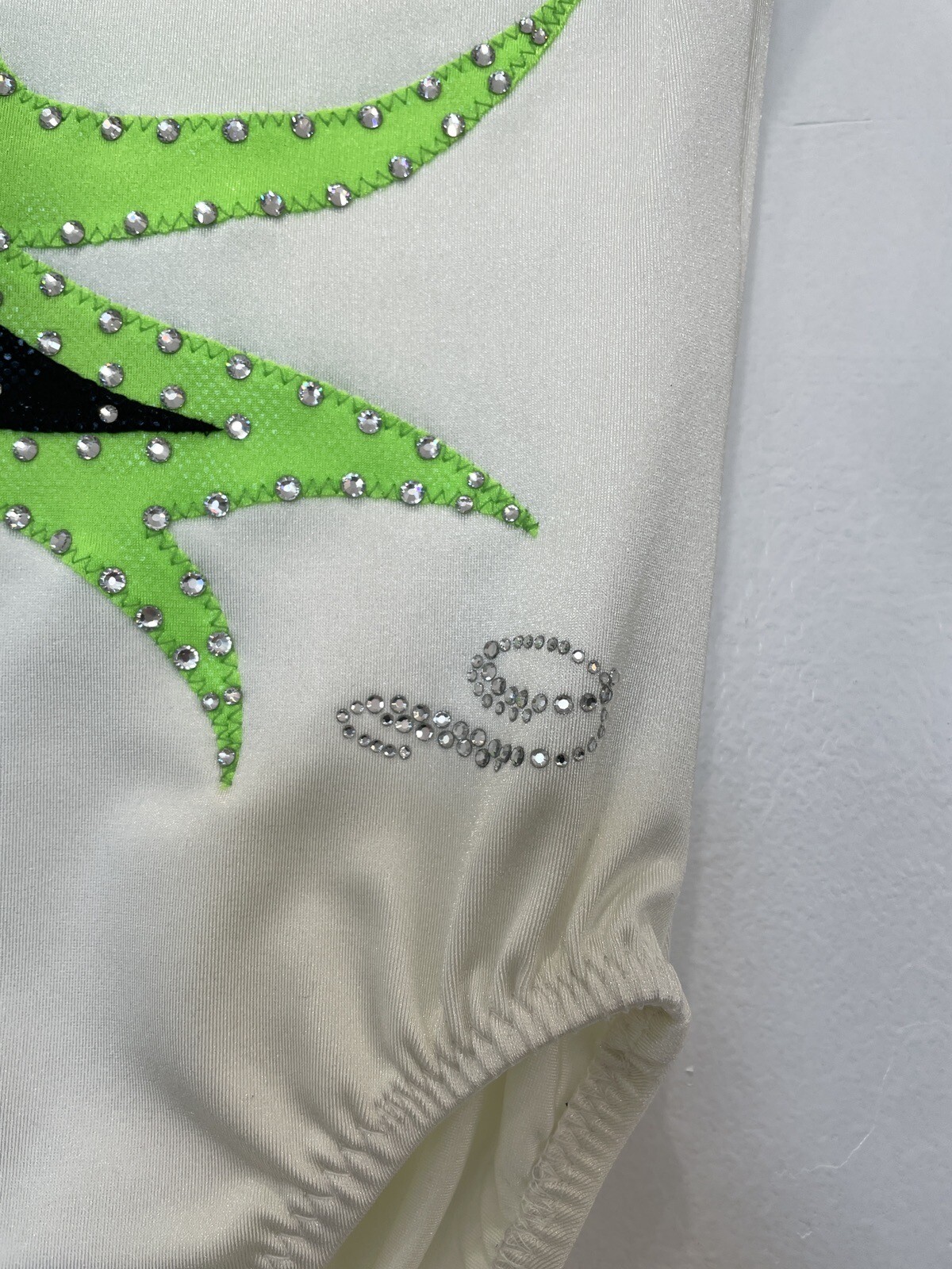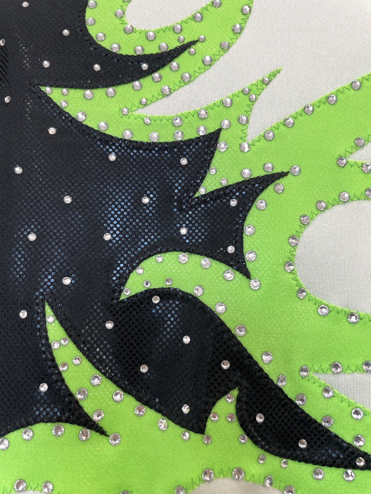 Dreamlight rhinestone competition gymnastics leotard White/Black/Lime GreenBLING