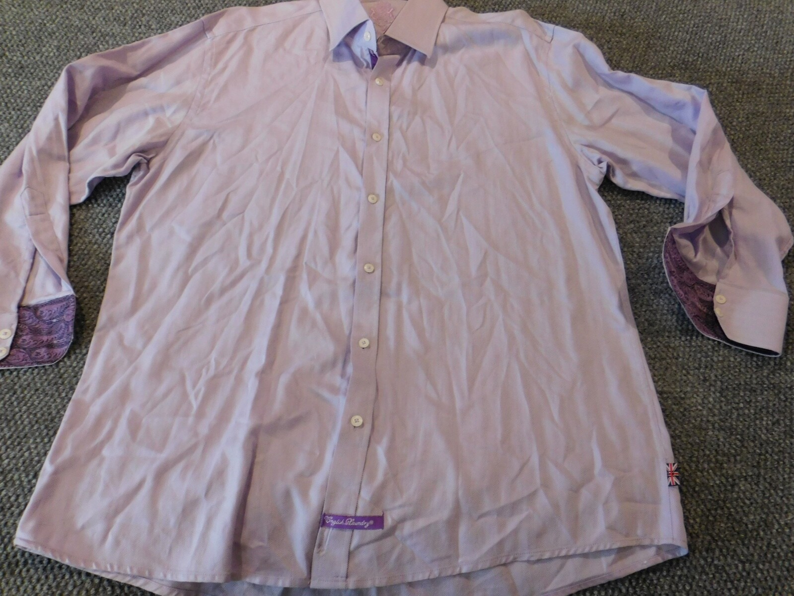 как выглядит English Laundry Mens shirt 17 purple fitted button up casual фото