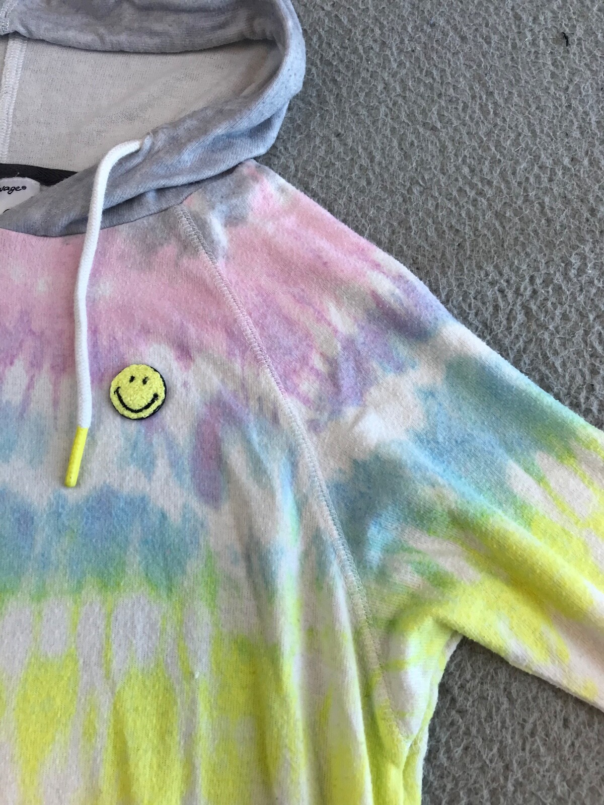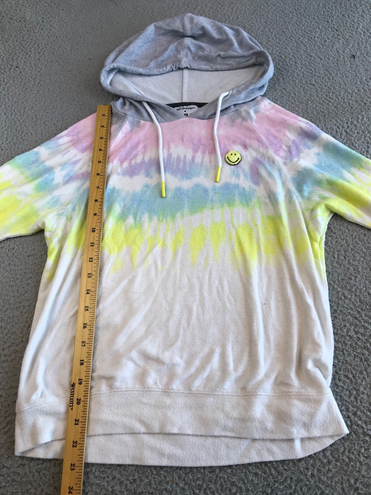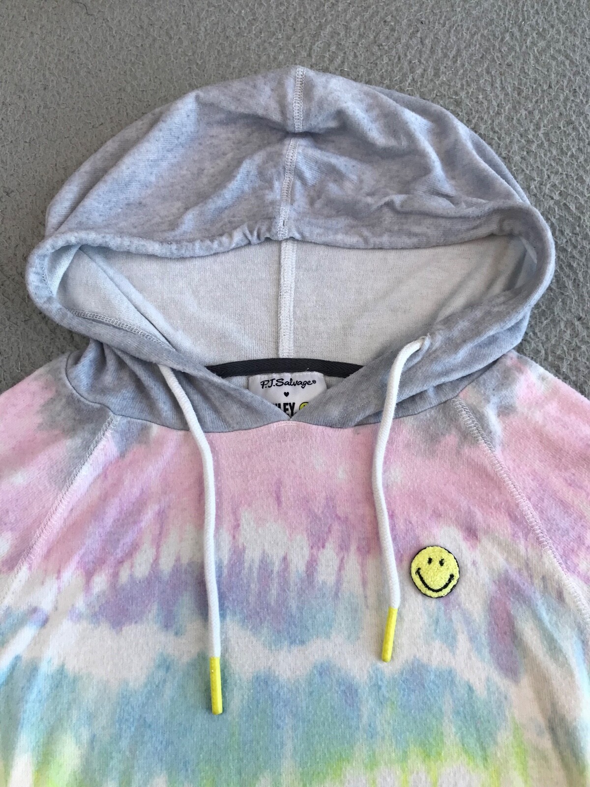PJ Salvage Pajama Shirt Women's Small White Tie Dye Hoodie Smiley Pullover