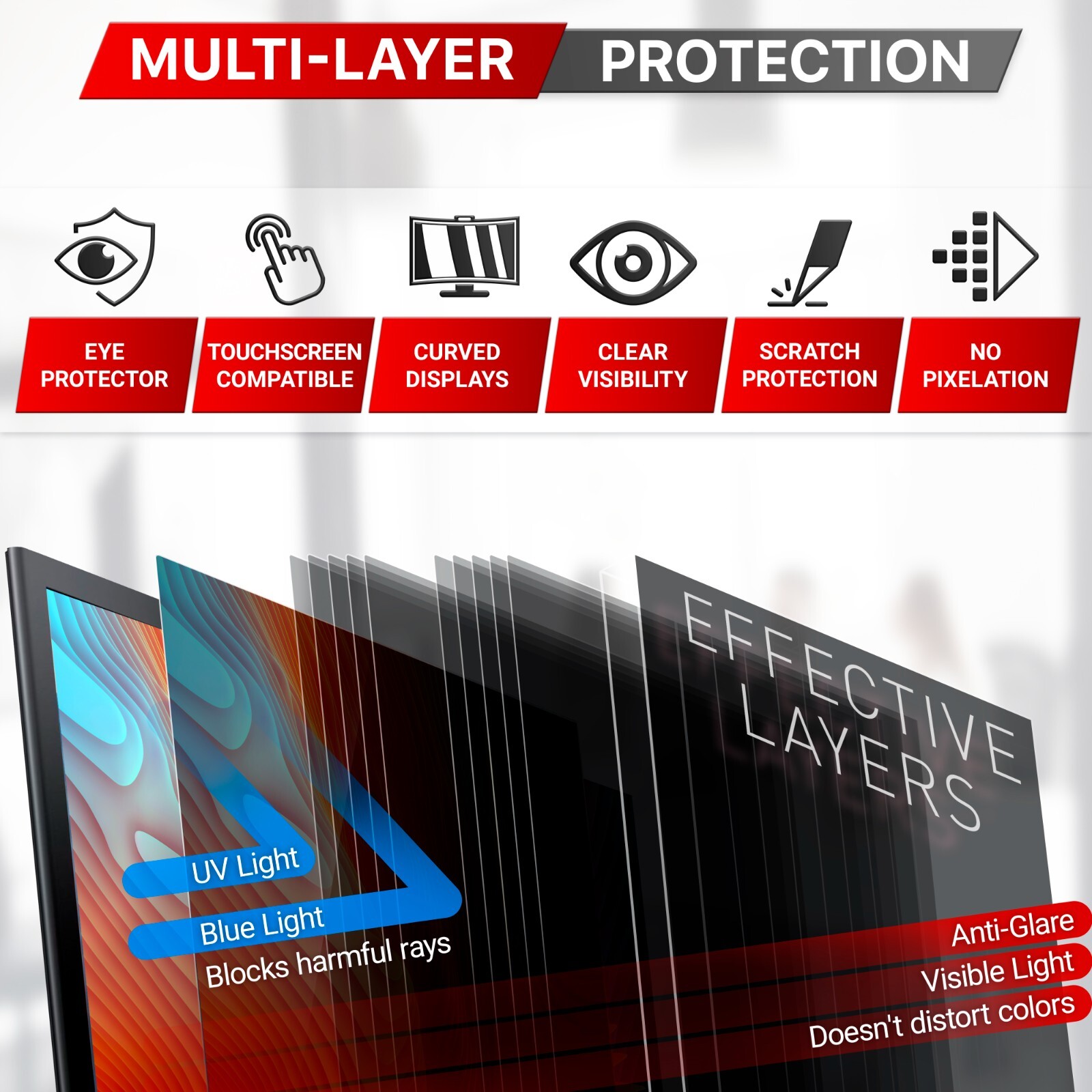 Особенности: Anti-Scratch, Glossy, Matte/Anti-Glare, UV Protection