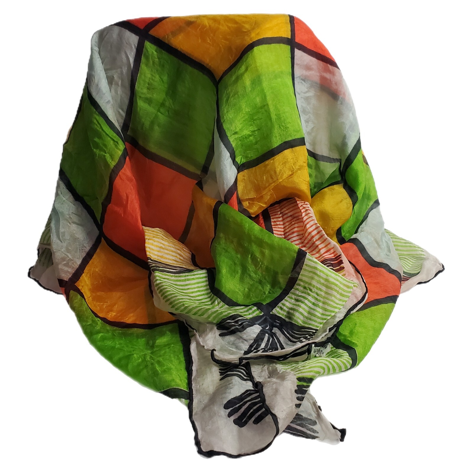 Vtg Carol Stanley Silk Scarf Square Go-Go 60s Art Deco Colorful Fun HTF Checked