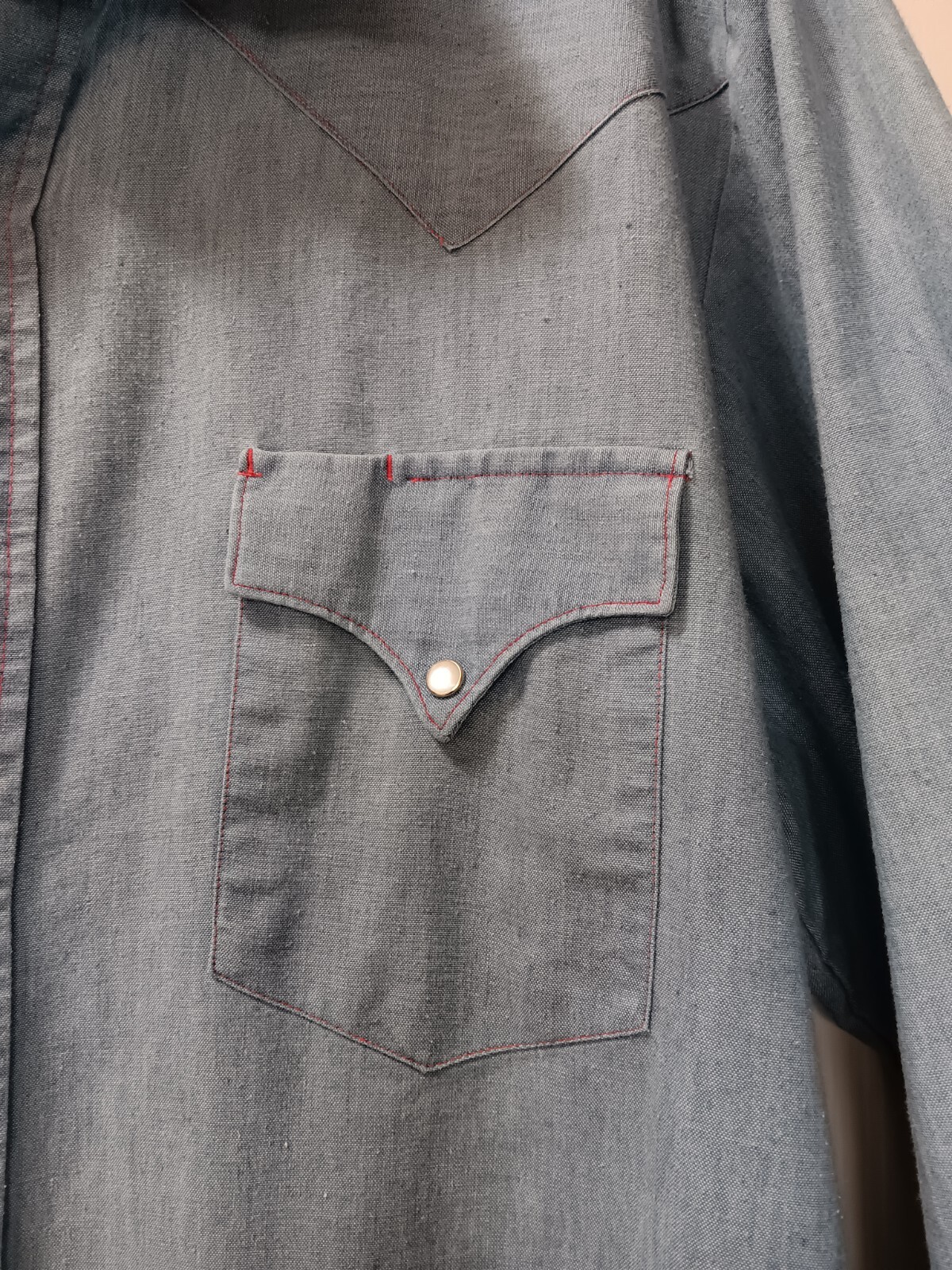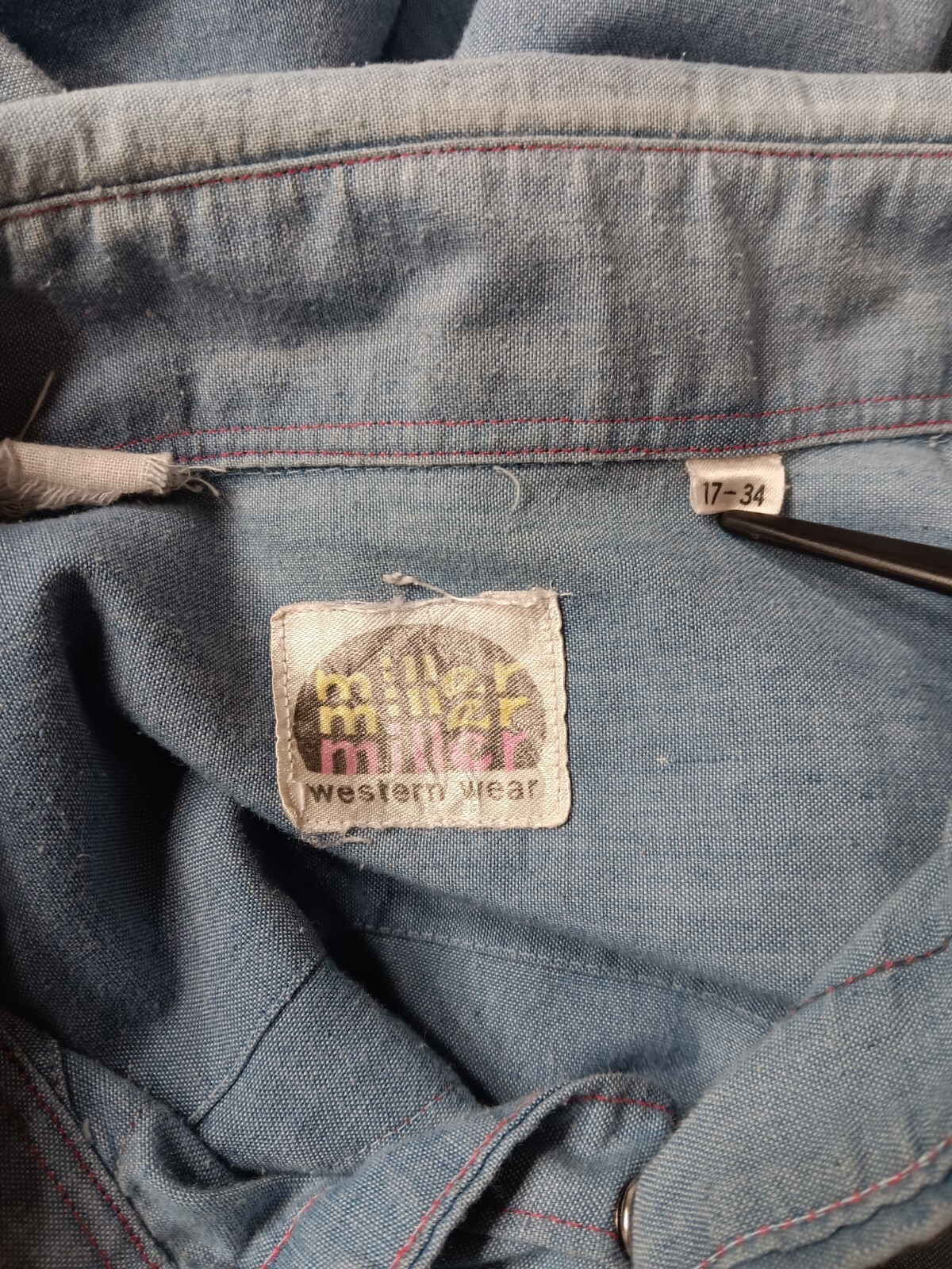 как выглядит Vtg 70s 80s Miller Western Wear Mens Pearl Snap Shirt Sz 17 34 Blue Red Stitch фото