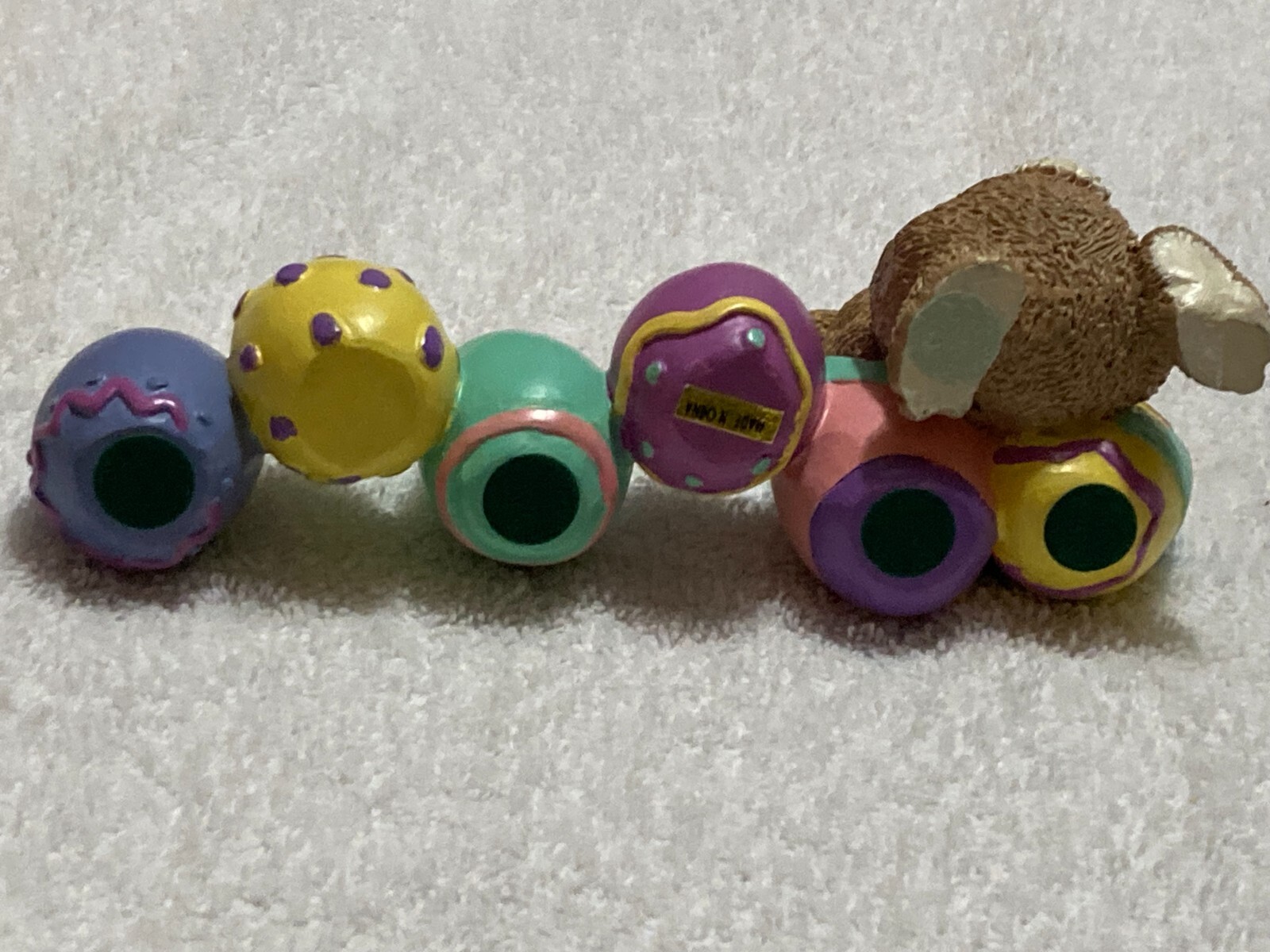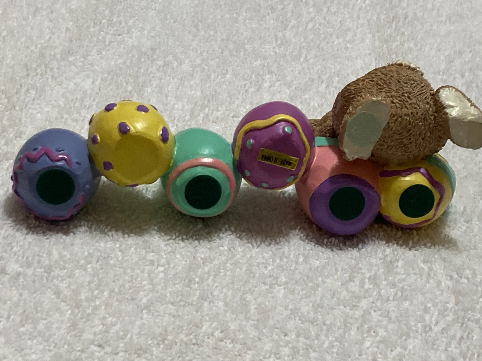 Easter Bunny Statue Decoration with Happy Easter and Bunny Eggs Resin Tableto...