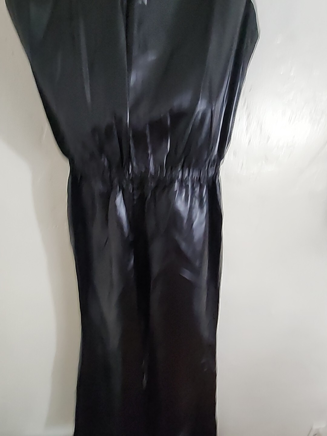 как выглядит vintage black satin jumpsuit 70s slinky sz 18 sleeveless disco 1970s excellent фото