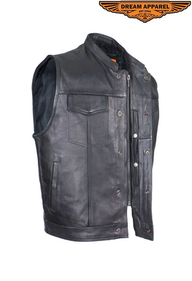 Men's Black Cowhide Leather Vest Motorcycle Concealed CLUB Custom Waistcoat