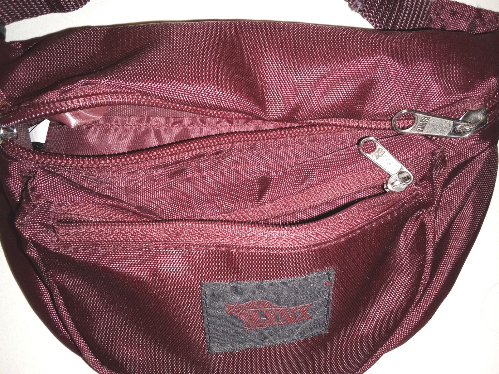 Vtg Lynx Nylon Zippered Fanny Pack, 10x6, Burgundy, Used.