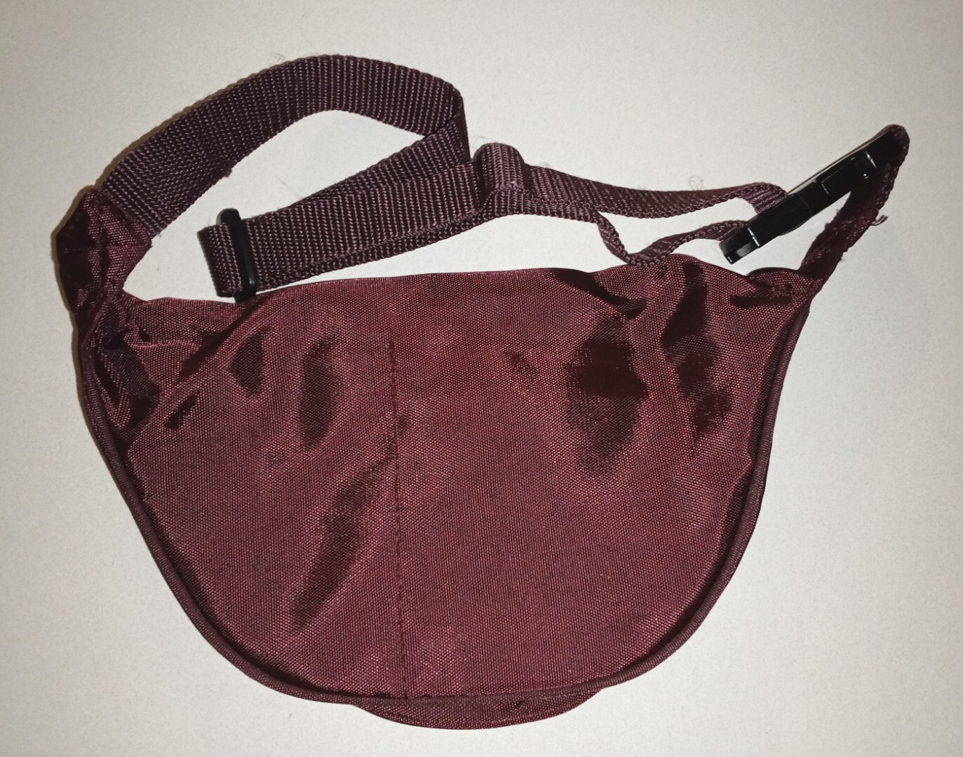 как выглядит Vtg Lynx Nylon Zippered Fanny Pack, 10"x6", Burgundy, Used. фото