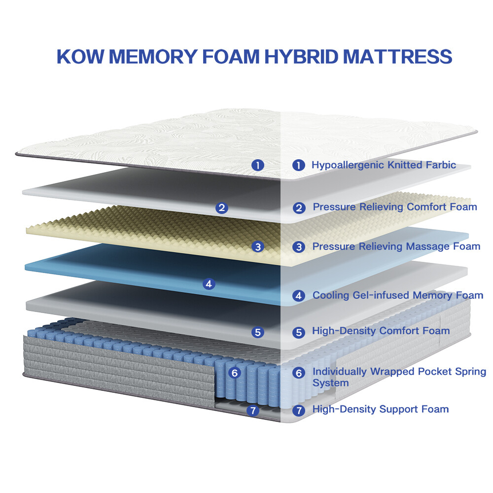 12 Inch Hybrid Mattress Bed in a Box, Full Queen King Twin XL Size, Medium Firm