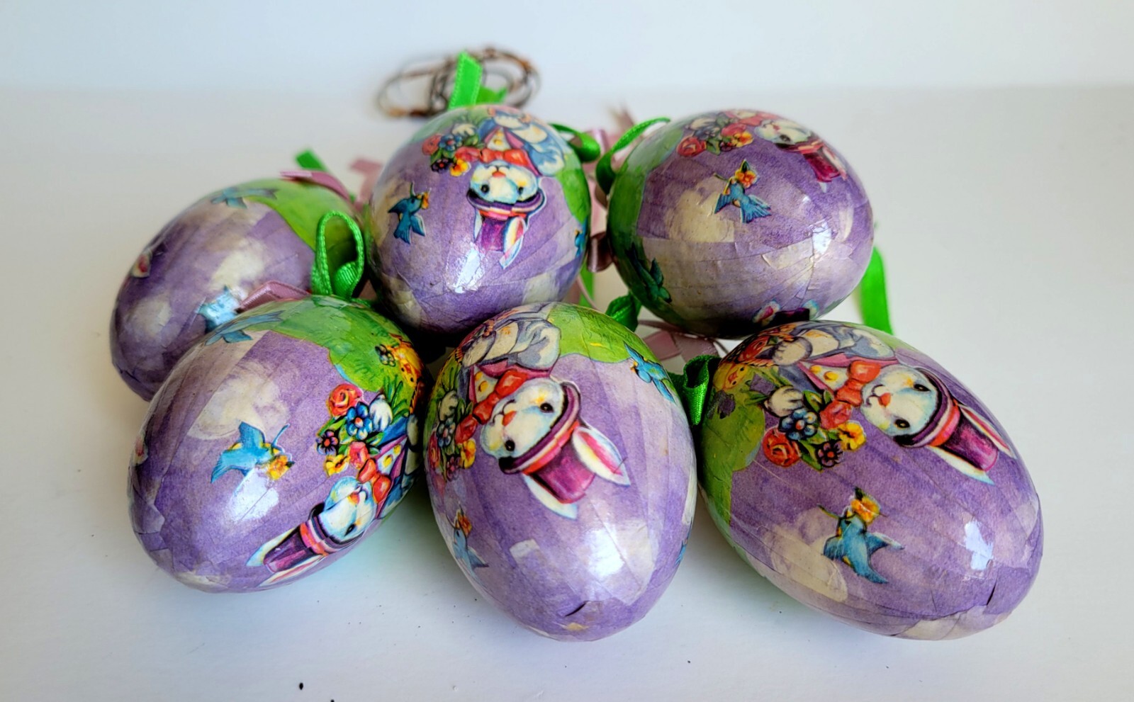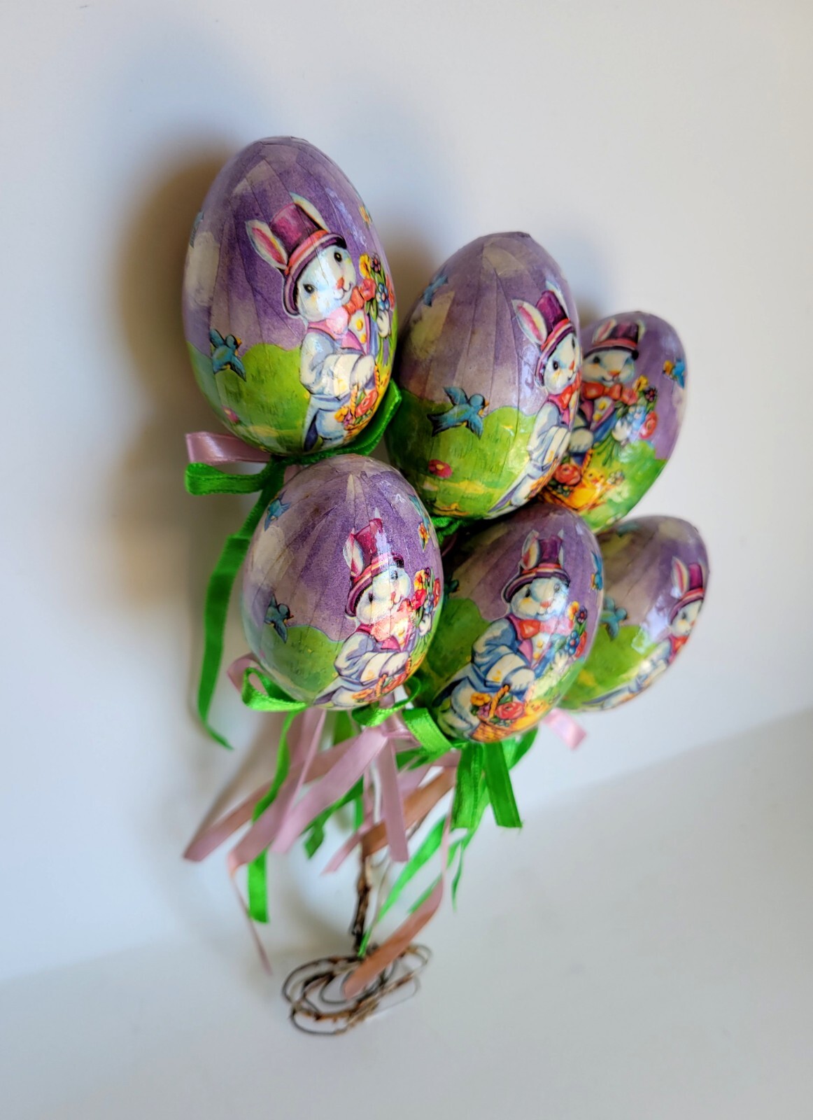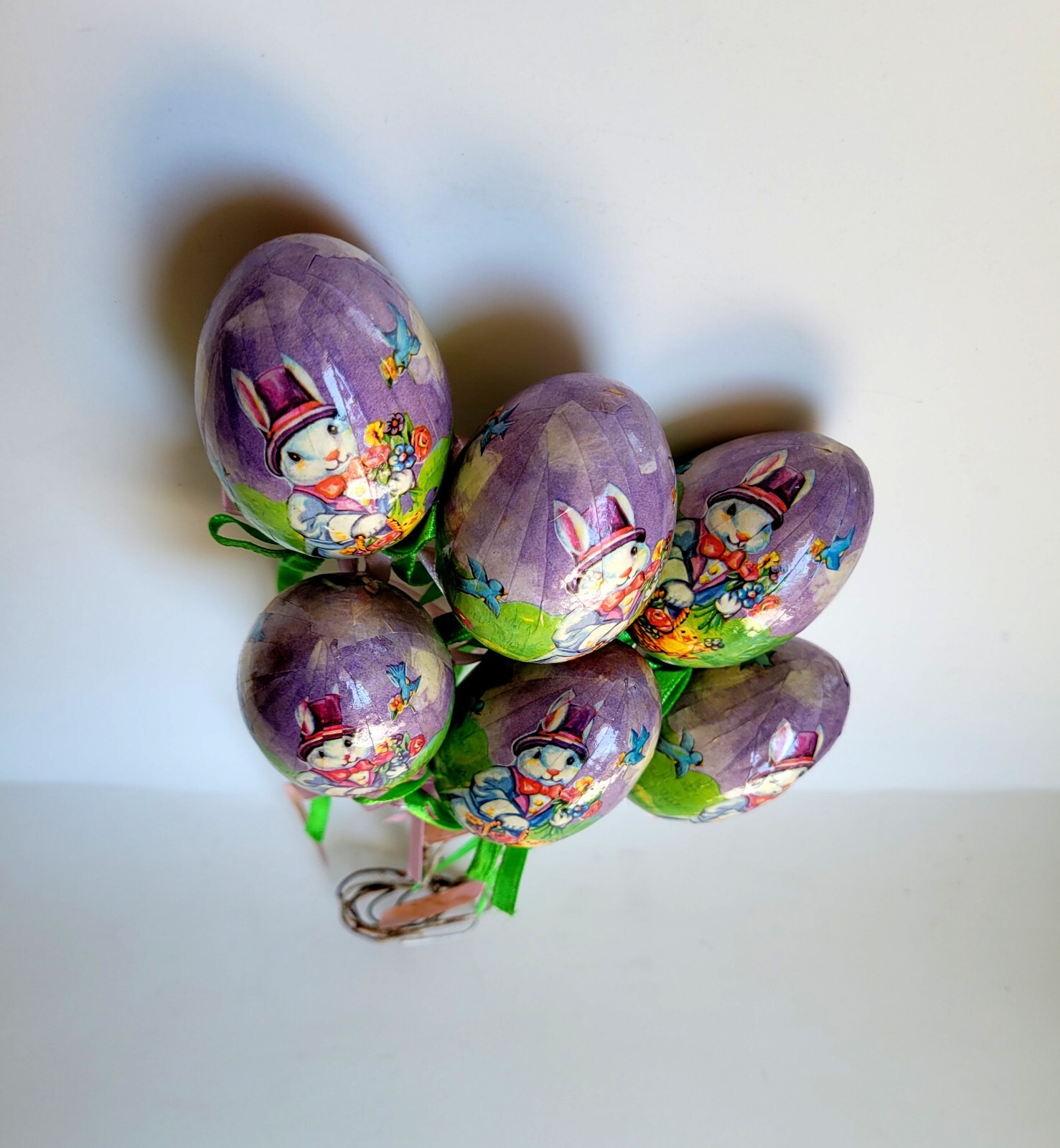 Vintage 6 Piece Set Foam Easter Egg Decoupage Wire Stick Holiday Bunny Decor