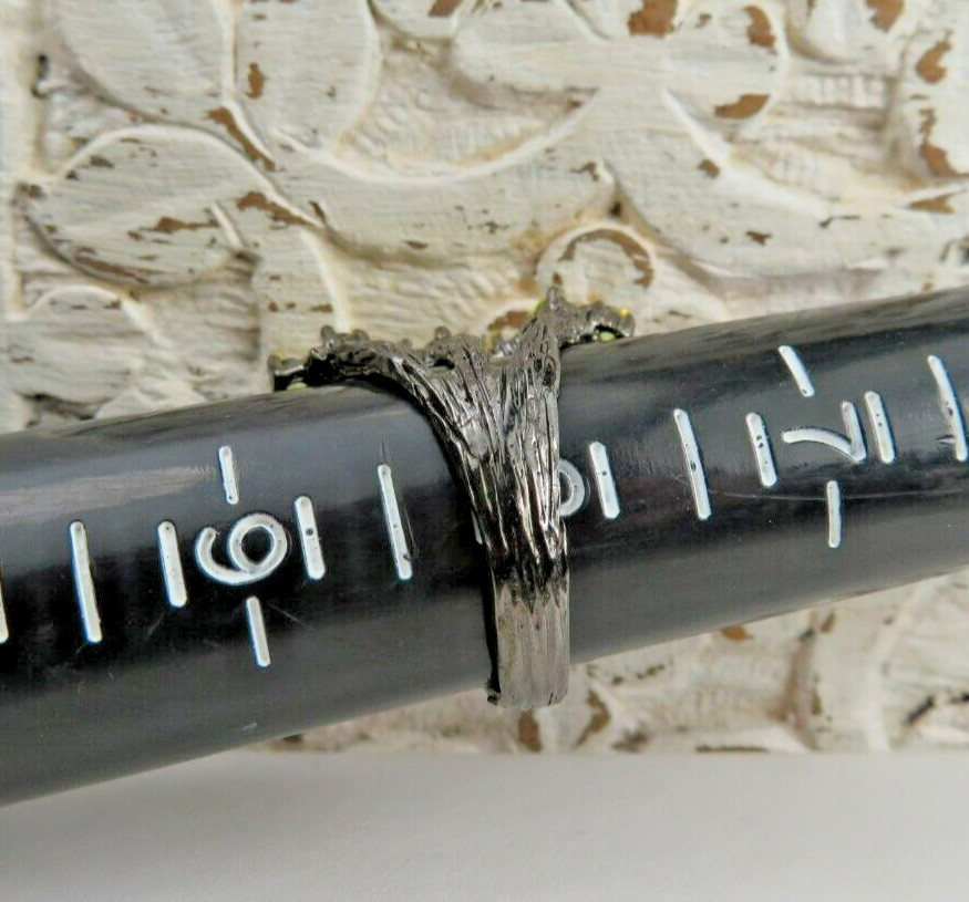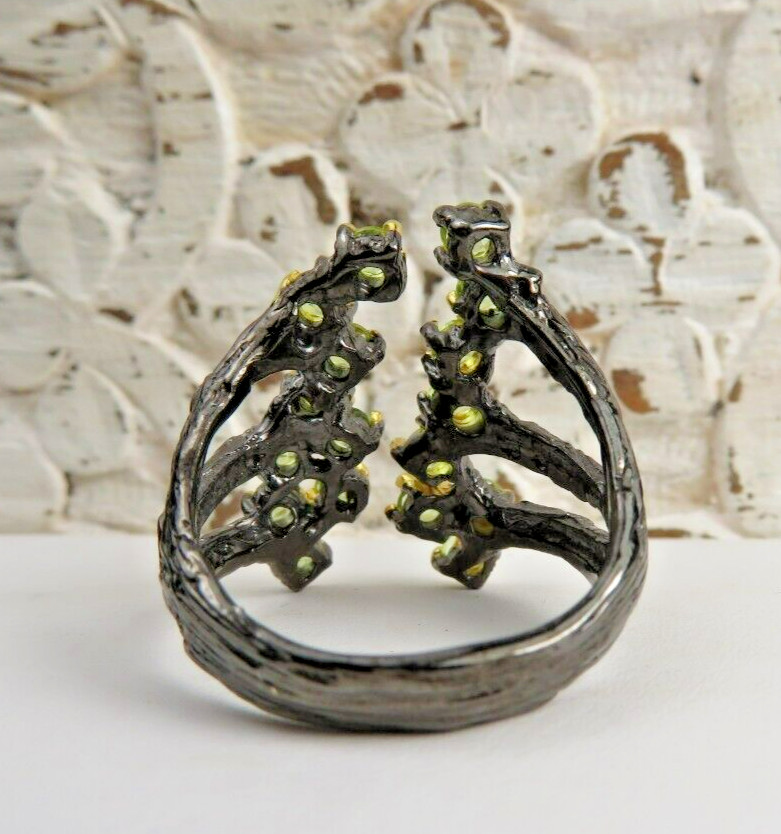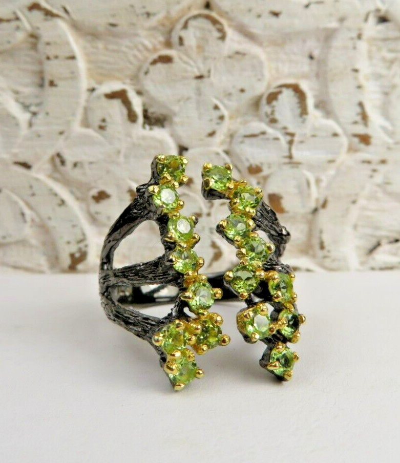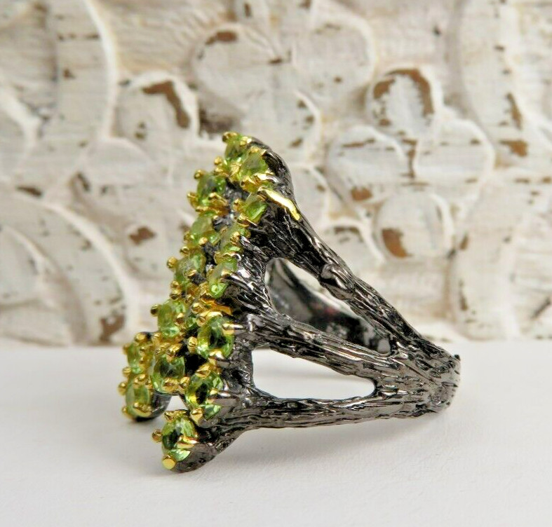 GORGEOUS GREEN PERIDOT AND DARK TINTED STERLING SILVER STATEMENT RING SZ 8