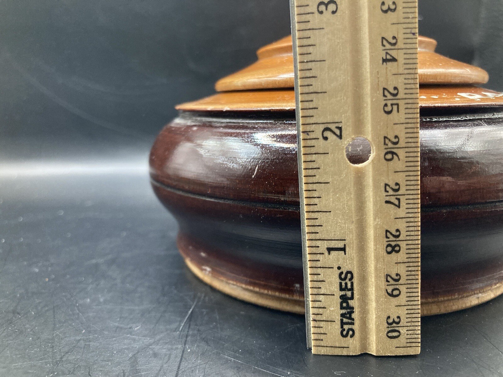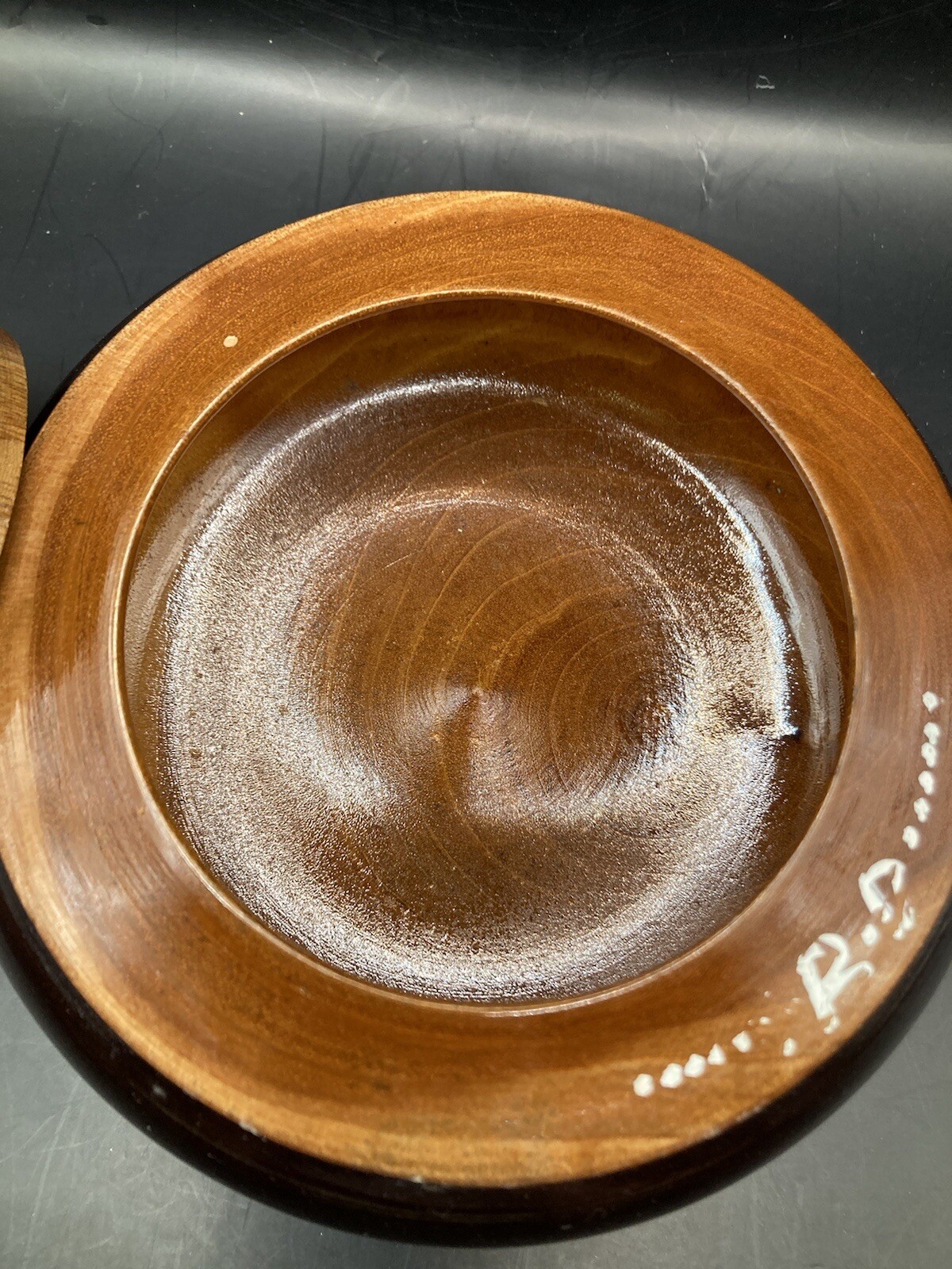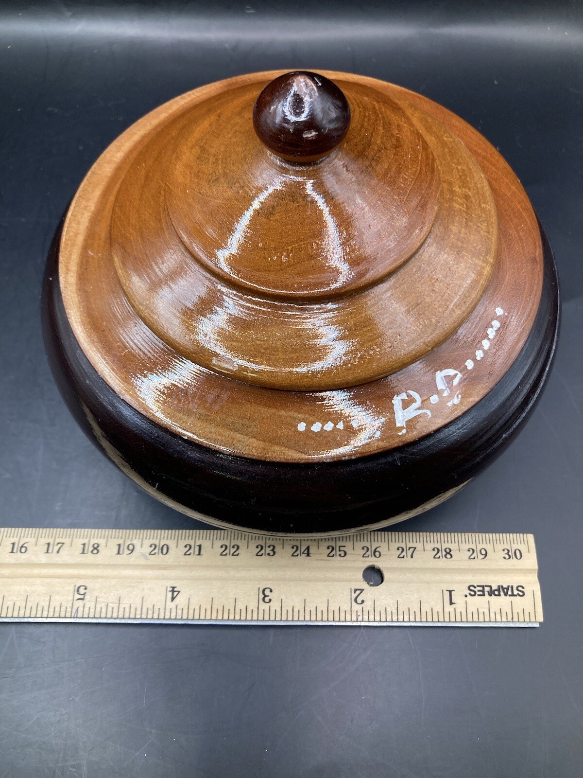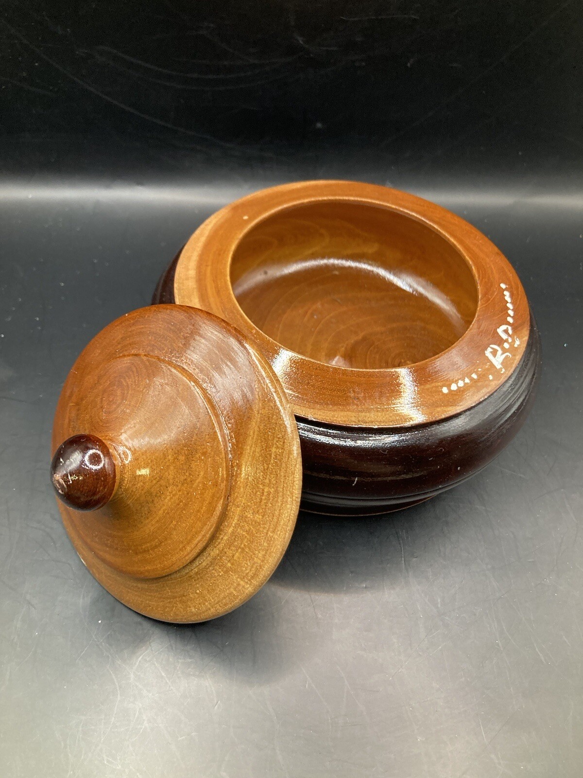 как выглядит Vintage Hand Turned Wooden Trinket Bowl With Lid 1970s Signed фото