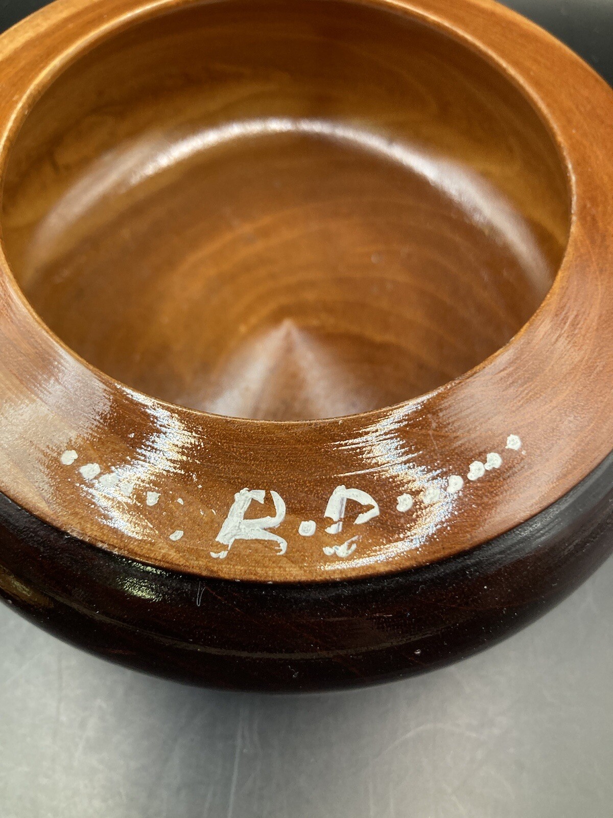 Vintage Hand Turned Wooden Trinket Bowl With Lid 1970s Signed
