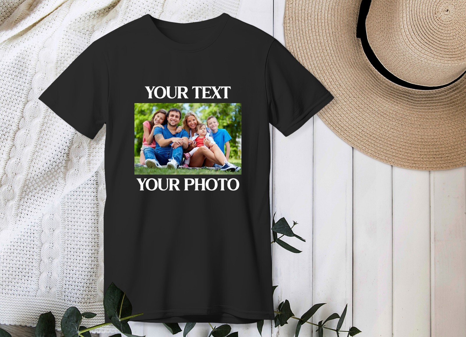 Personalization Instructions: Please provide:- Your Photo (Send through eBay message)-Please include your custom text exactly as you would like it printed on the shirt, and include your font selection (see images for options). For