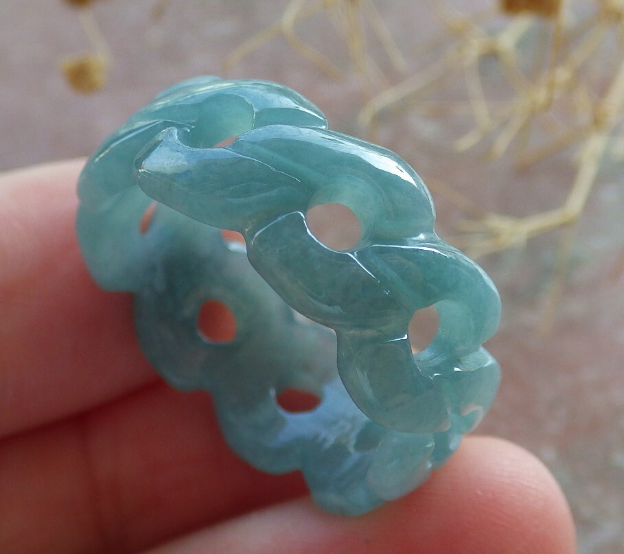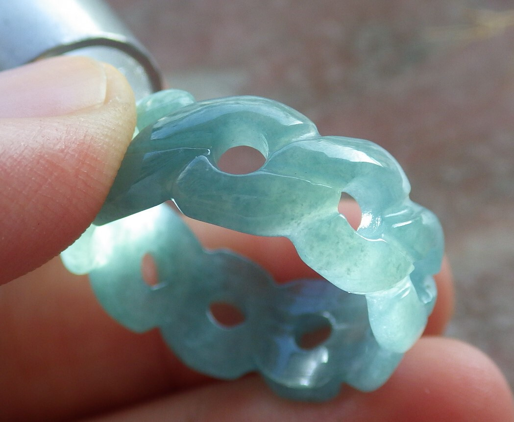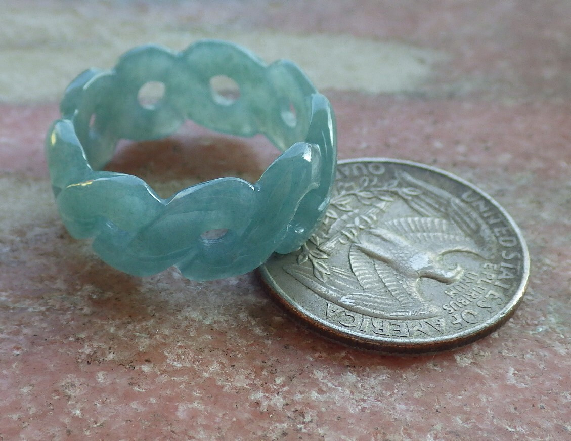 Certified Icy Green Natural A JADE Jadeite Knotted RING USA. 9.75 635985 AS