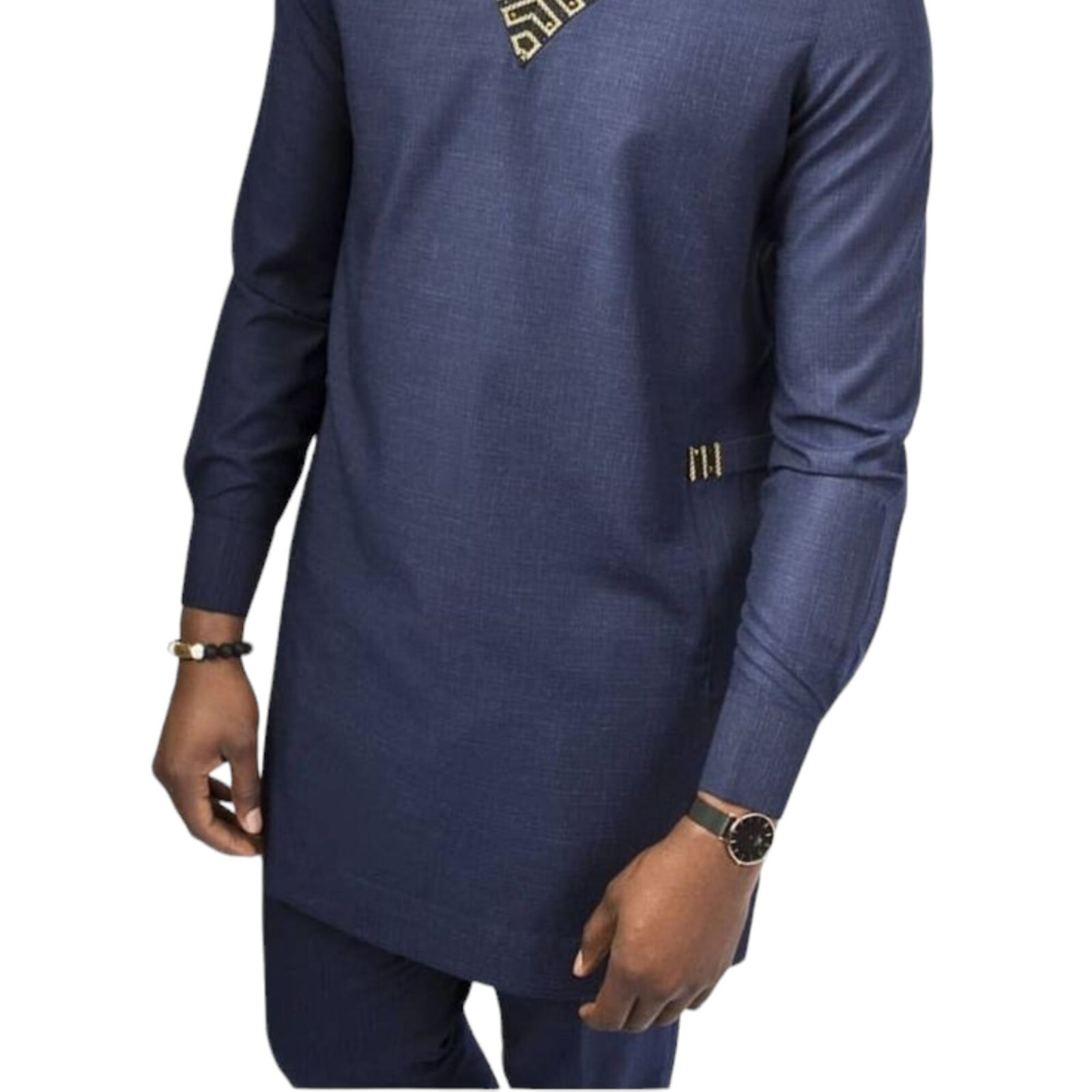 African Men 2 Piece Set Kaftan Shirt Pants Embroidered Danshiki Traditional Suit