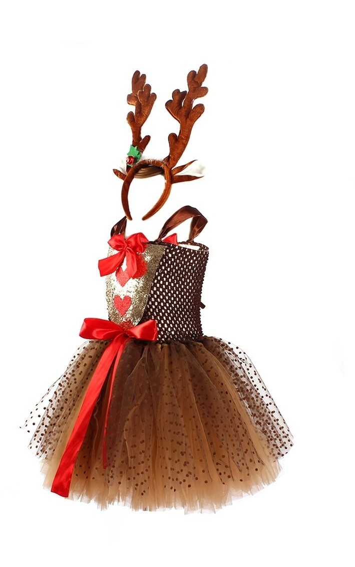 Kids Girls Mesh Dress for Christmas Cosplay Reindeer Costume ,Size 10-12