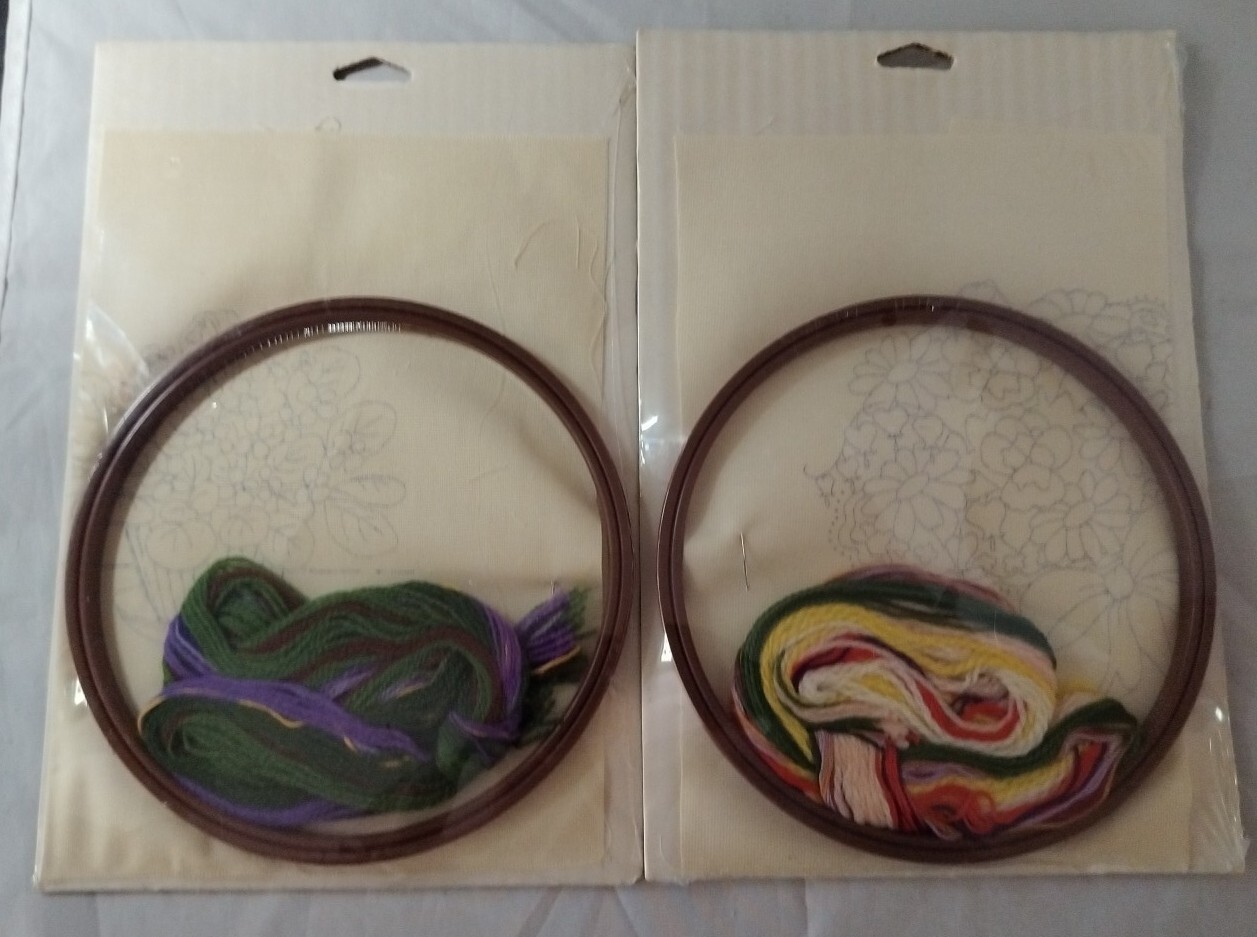WONDERART 7 INCH HOOP STITCHERY KITS Daisy Nosegay African Violets