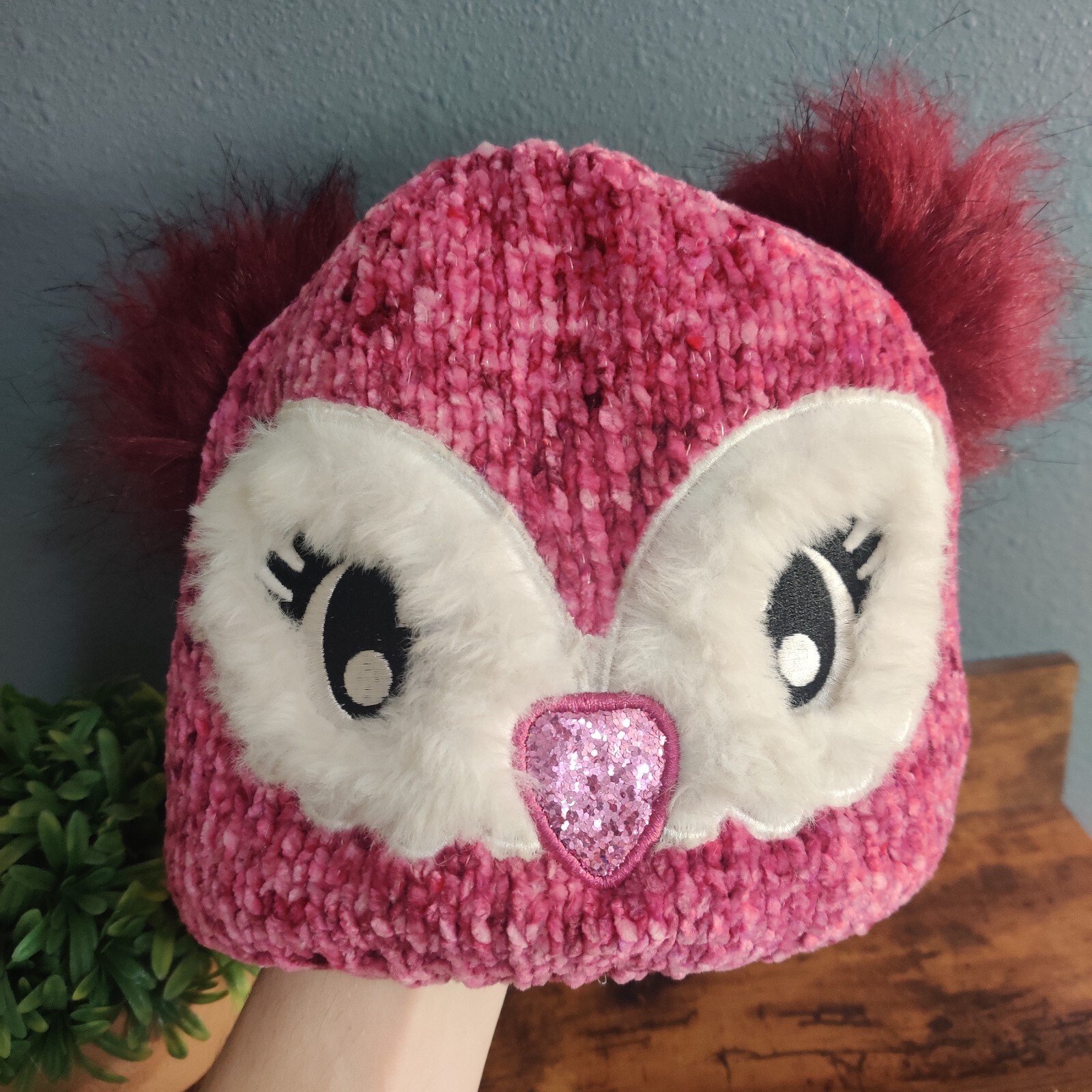 как выглядит Owl Kids Beanie Childrens Place Stocking Hat little girls L/XL burgundy maroon фото