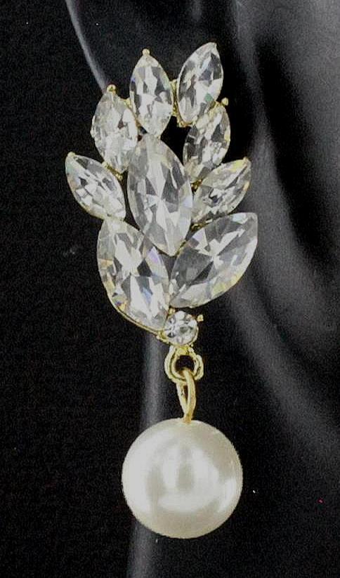 как выглядит White Pearl Dangle Earrings Crystal Floral Design Gold Posts Wedding Bridal фото