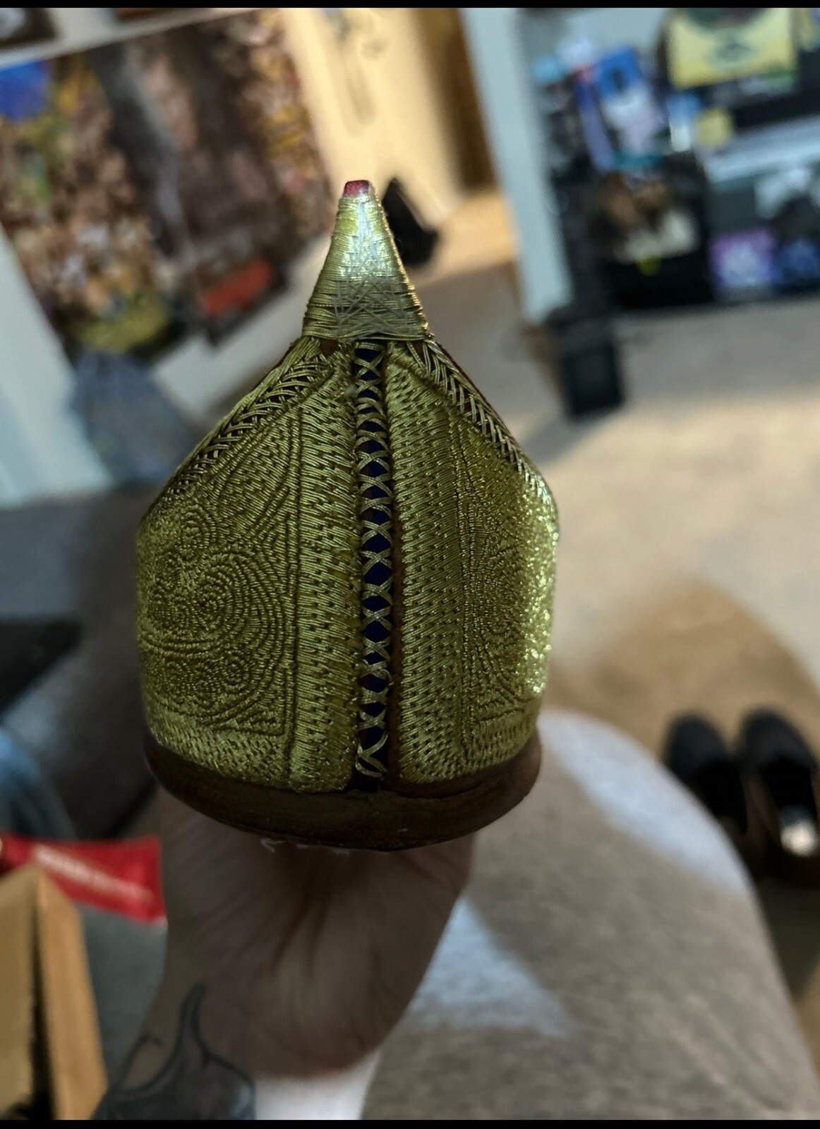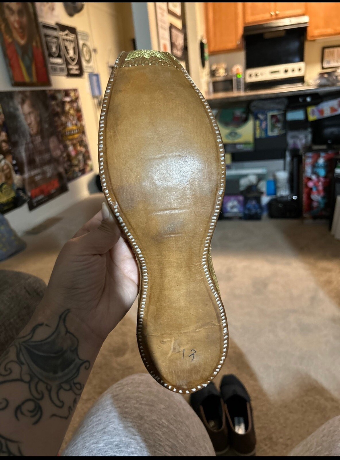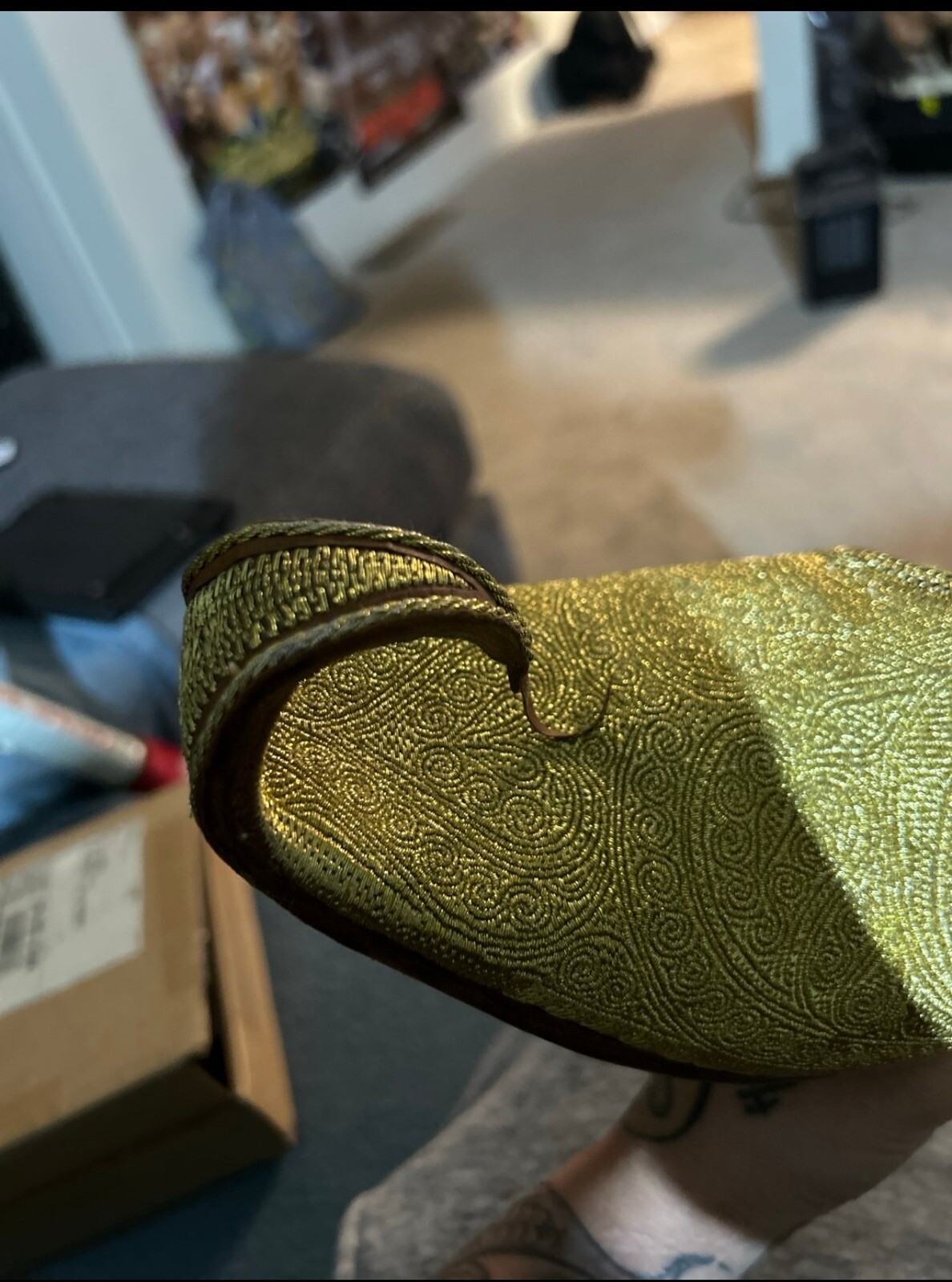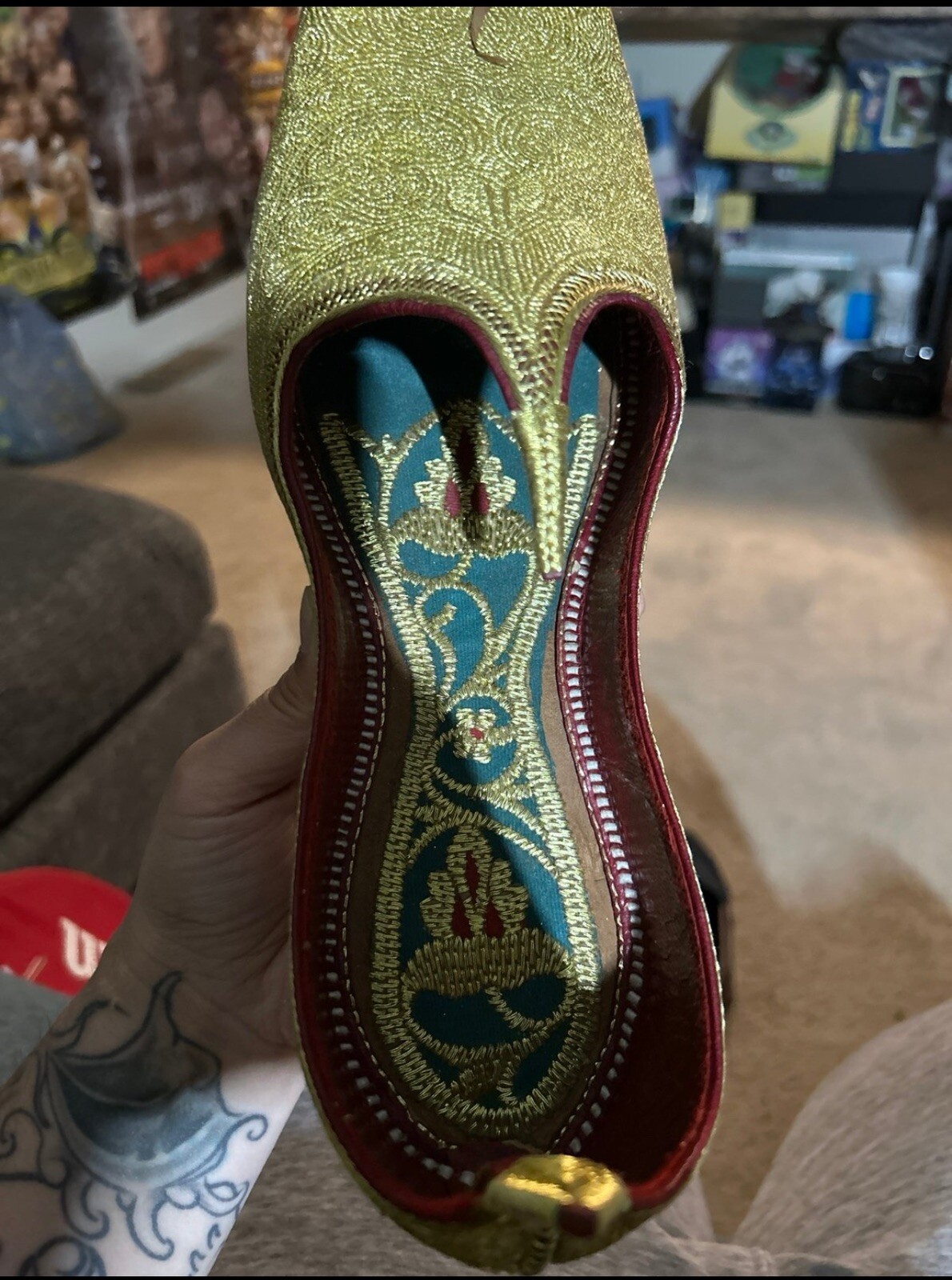 как выглядит Vintage India Pakistan Punjab Gold Embroidered Jutti Curl Toe Shoes фото