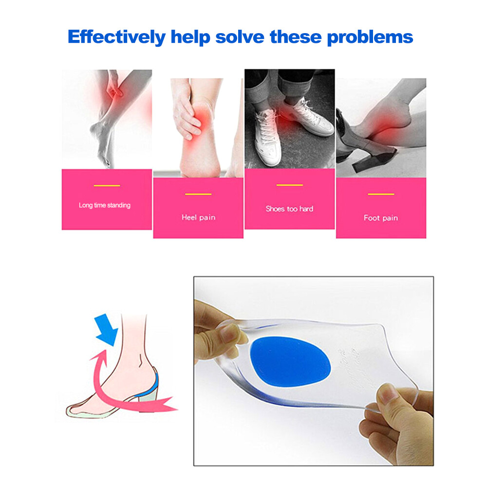 1 Pair Silicone Heel Cups Pads Shoe Inserts Soft -slip Foot Pain A0I5