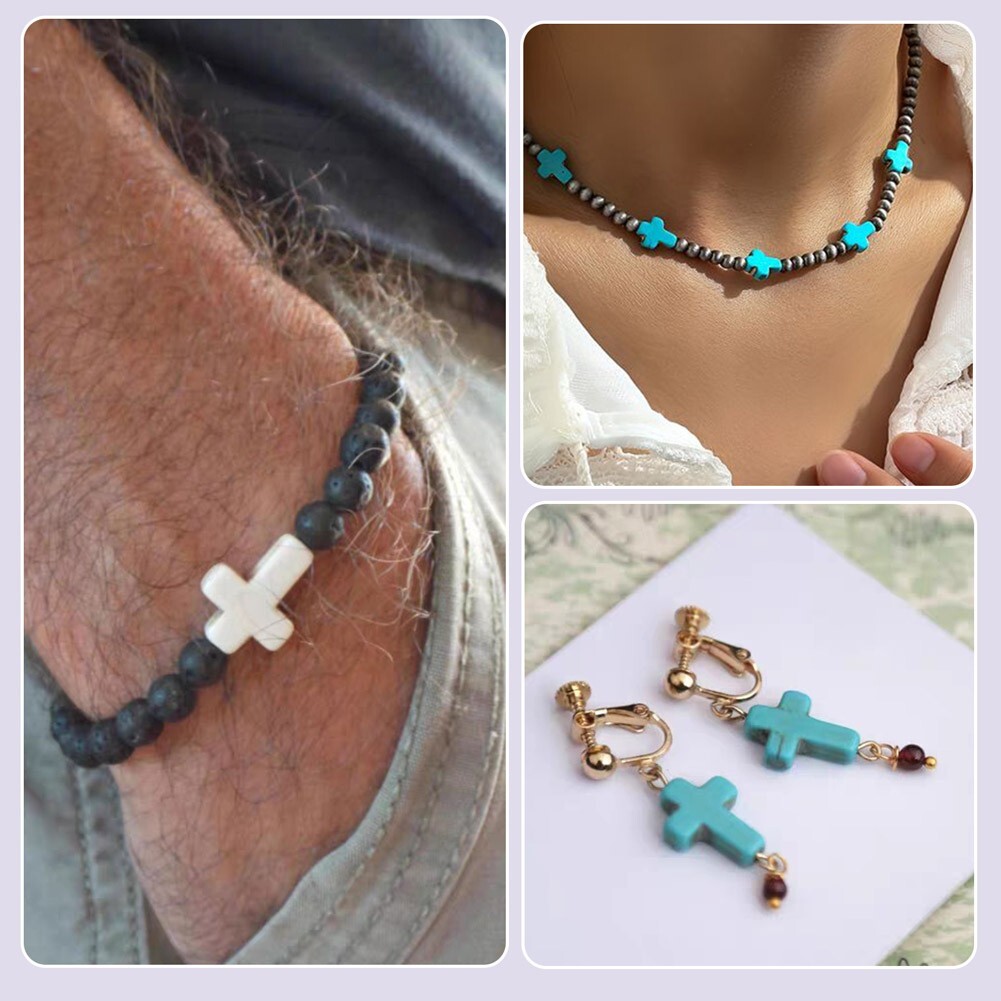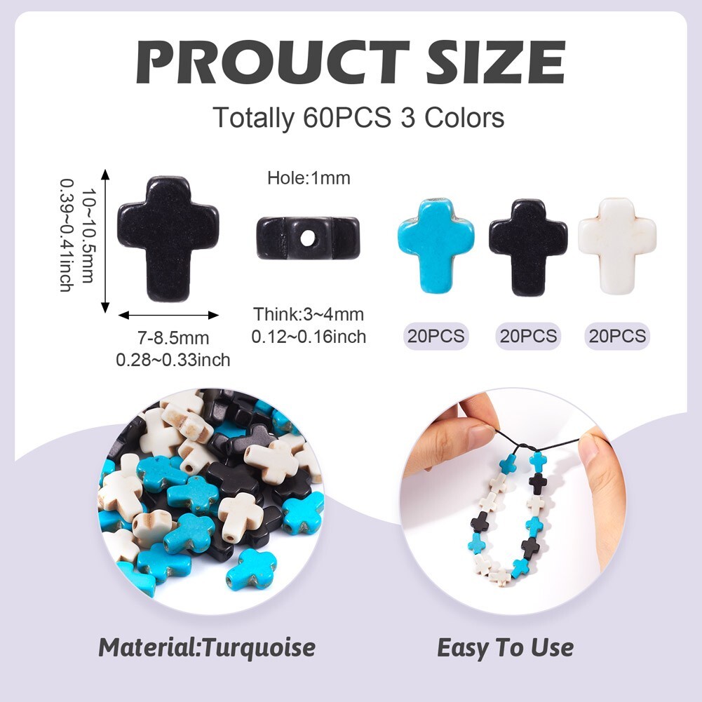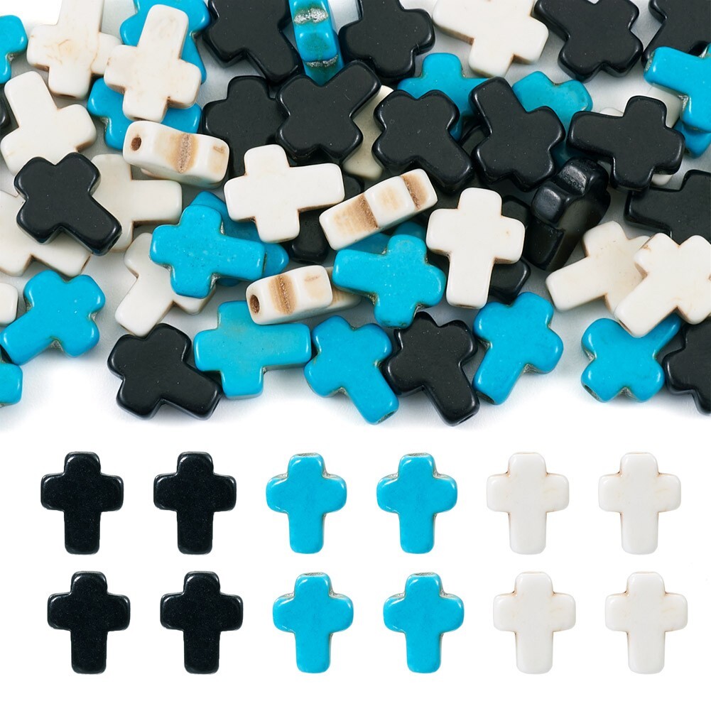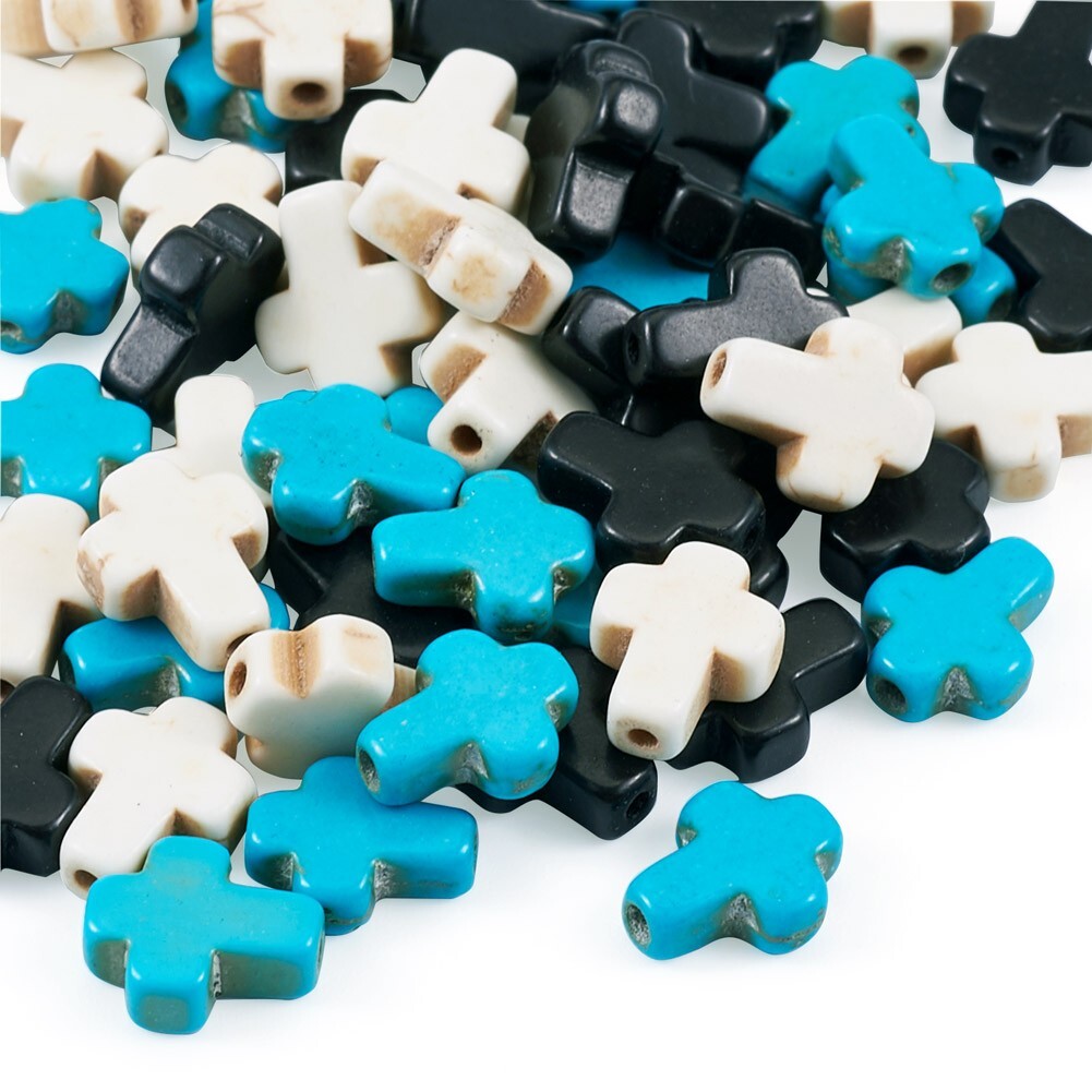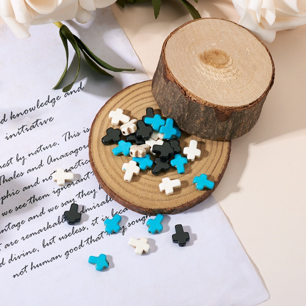 60Pcs Cross Synthetic Turquoise Dyed Beads Crafts For Jewelry Making 10 10.5mm