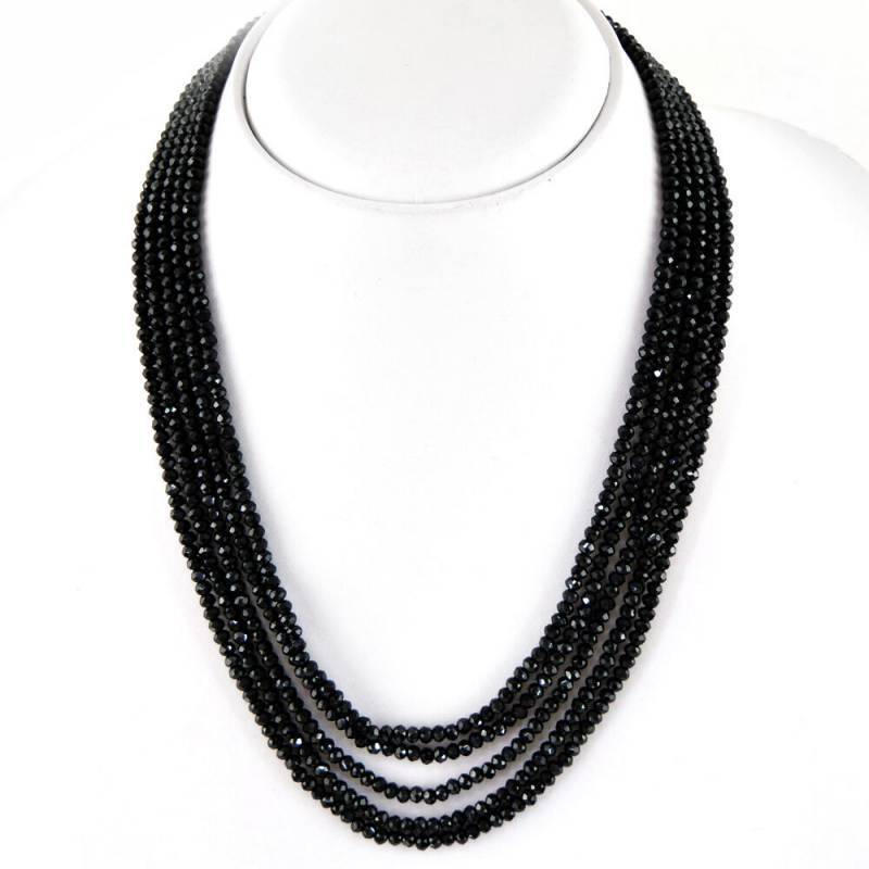 как выглядит NATURAL 5 STRAND RICH BLACK SPINEL ROUND FACETED BEADS NECKLACE Cuff Emotional фото