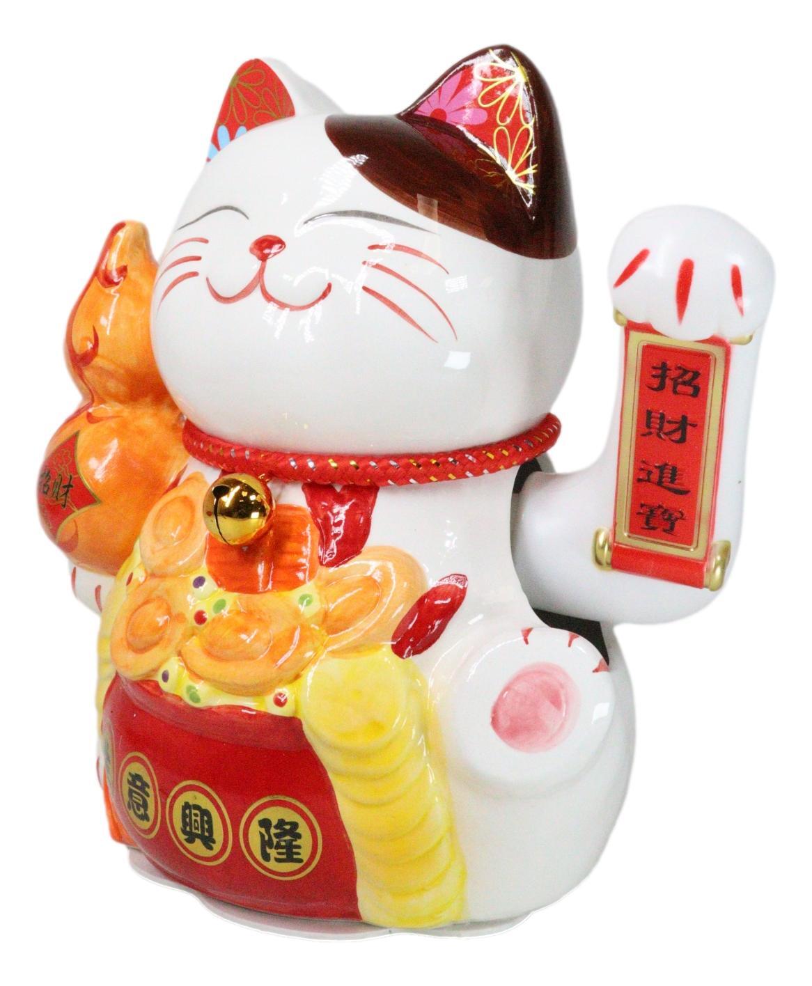 Japanese Lucky Charm White Beckoning Cat Maneki Neko With Waving Arm Statue 10