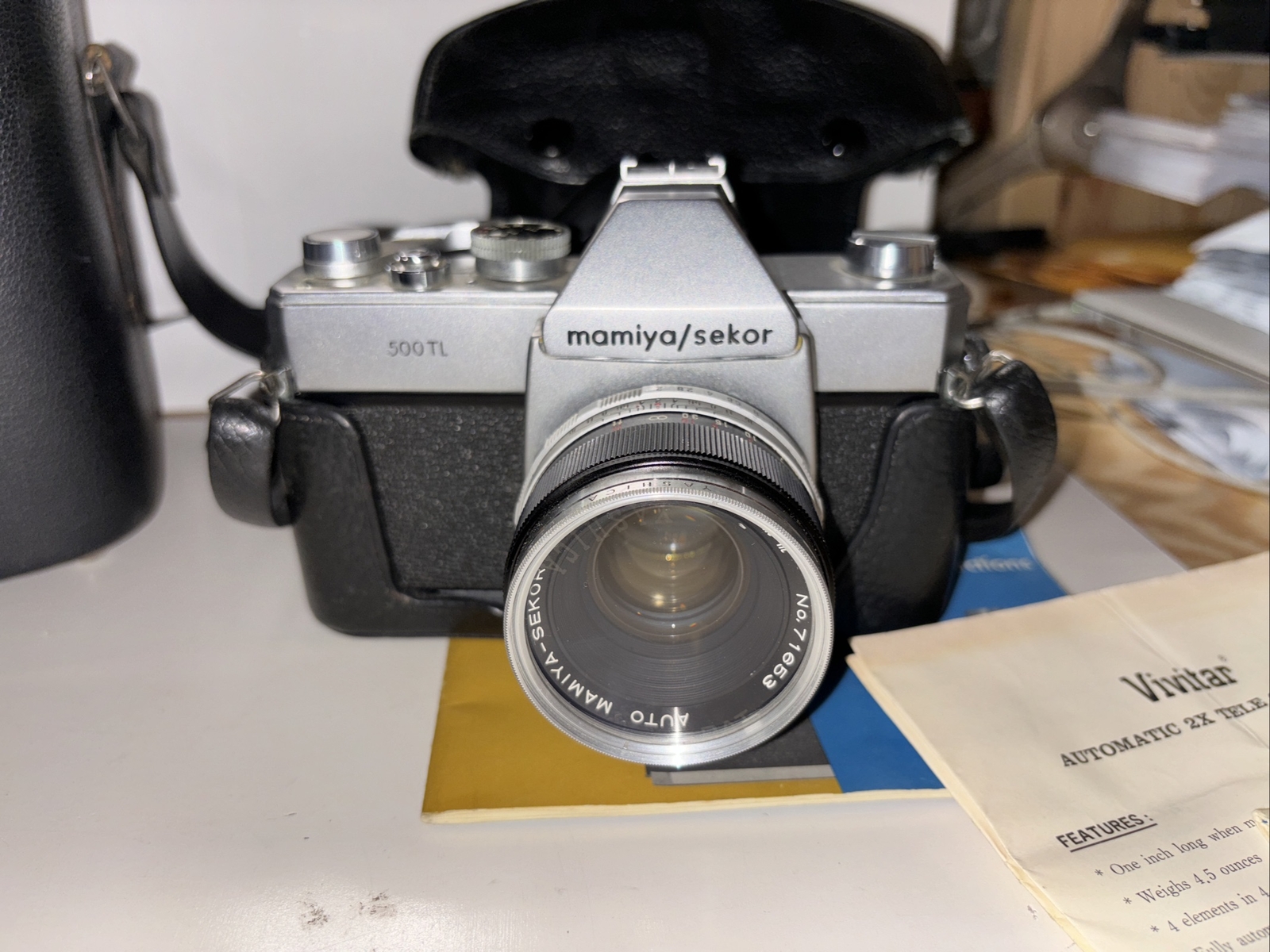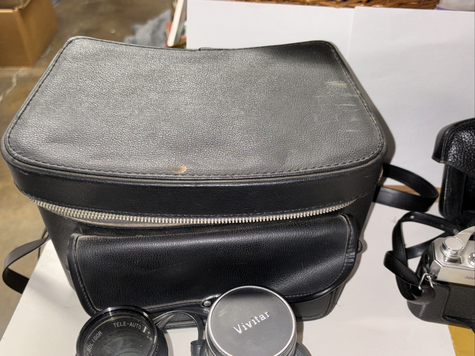 mamiya/sekor 500 DTL 35mm camera w/50mm f/ And 3 Extras Vivitar Lenses Check Pic