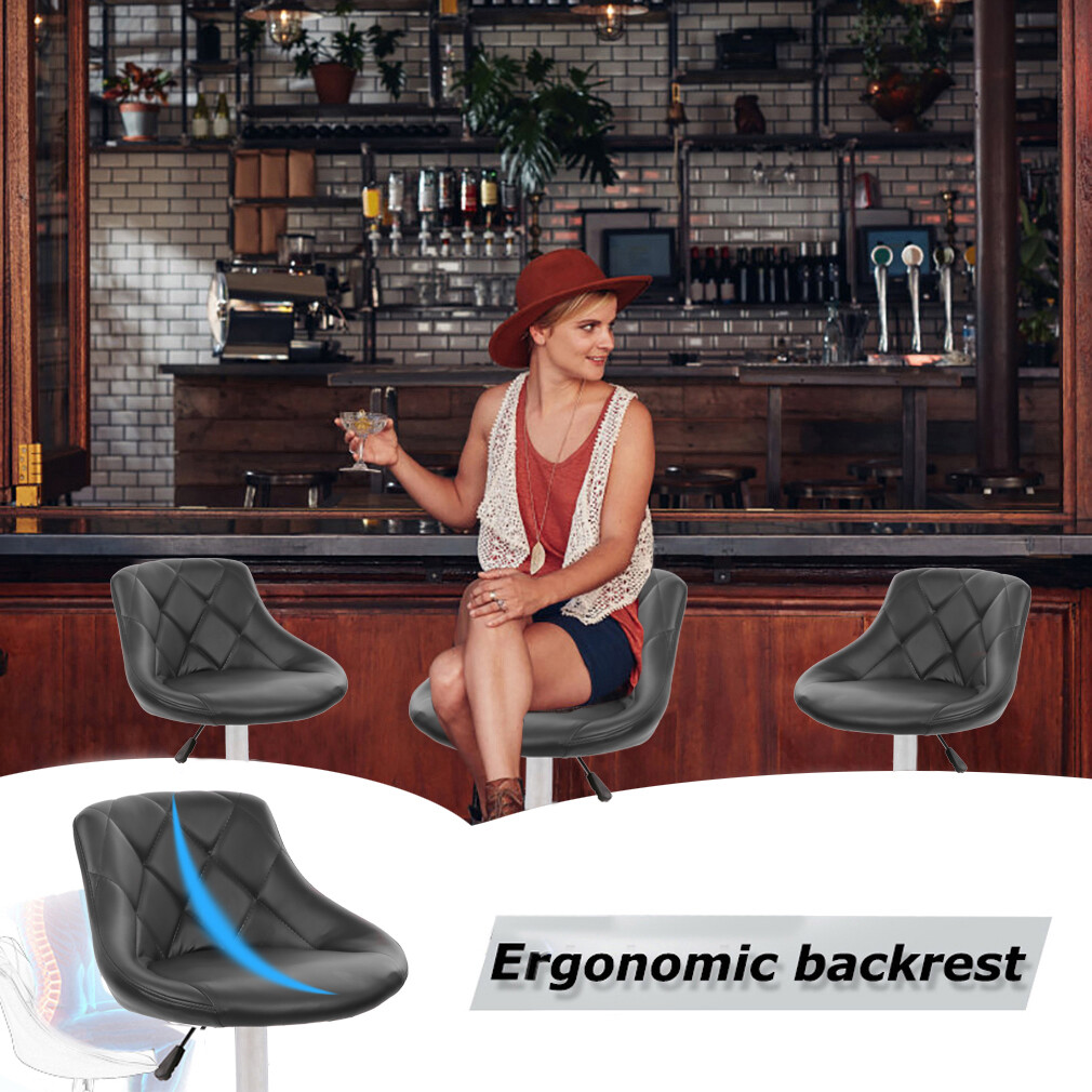 New PU Leather Bar Stools Modern Swivel Dinning Kitchen Chair, Set of 2