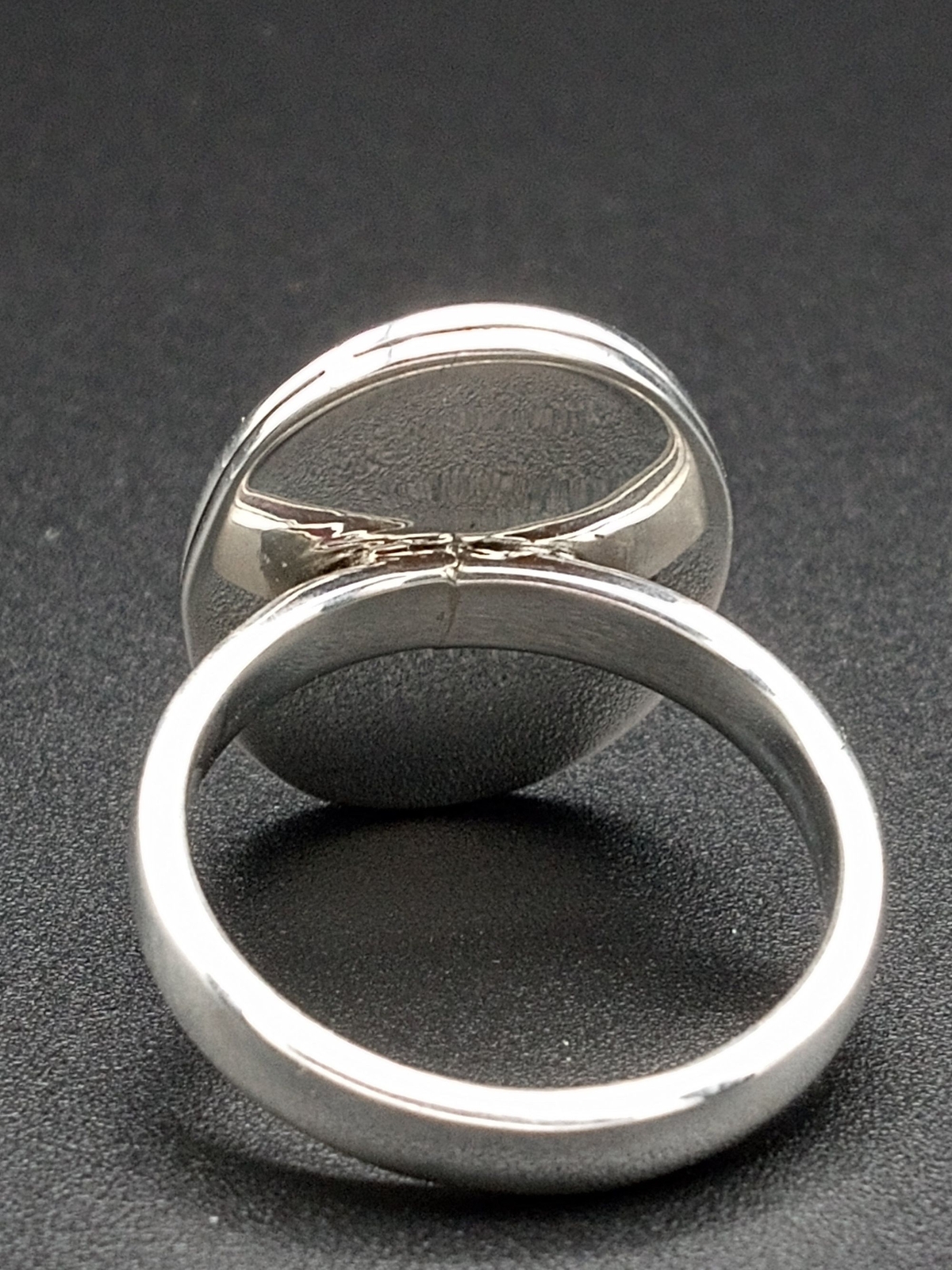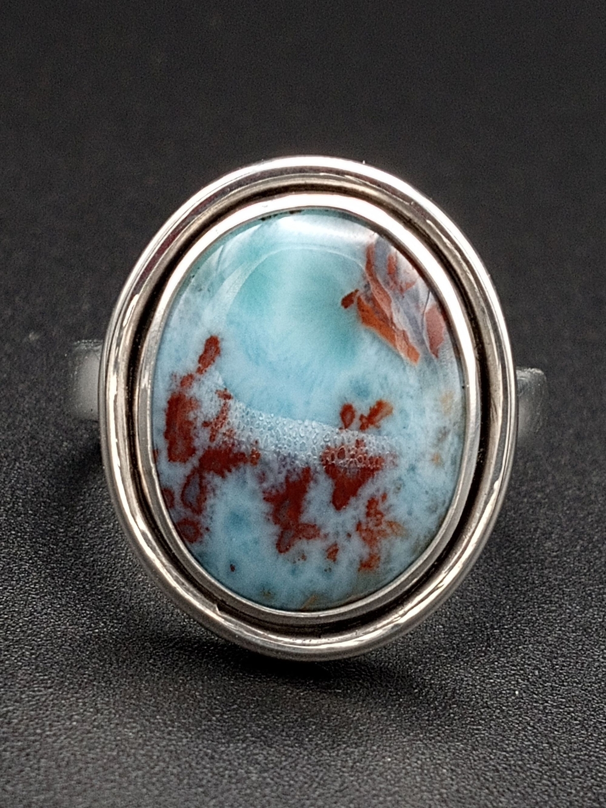 Handmade Oval Dendritic Larimar Sterling Silver Ring - Size 7