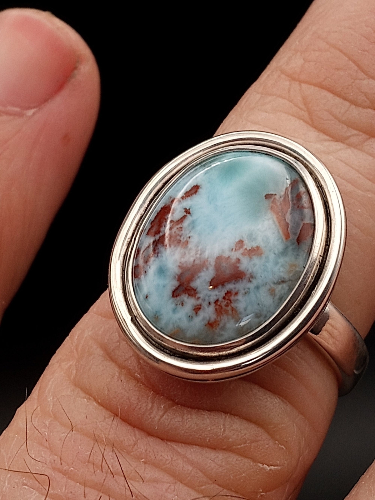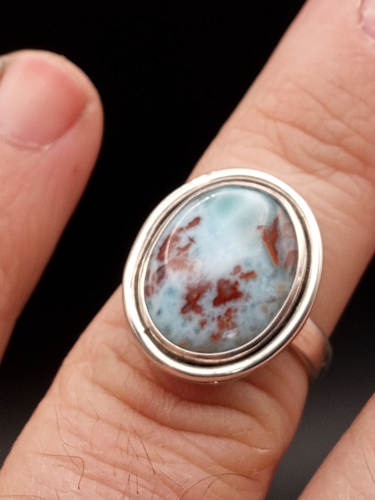 как выглядит Handmade Oval Dendritic Larimar Sterling Silver Ring - Size 7 фото