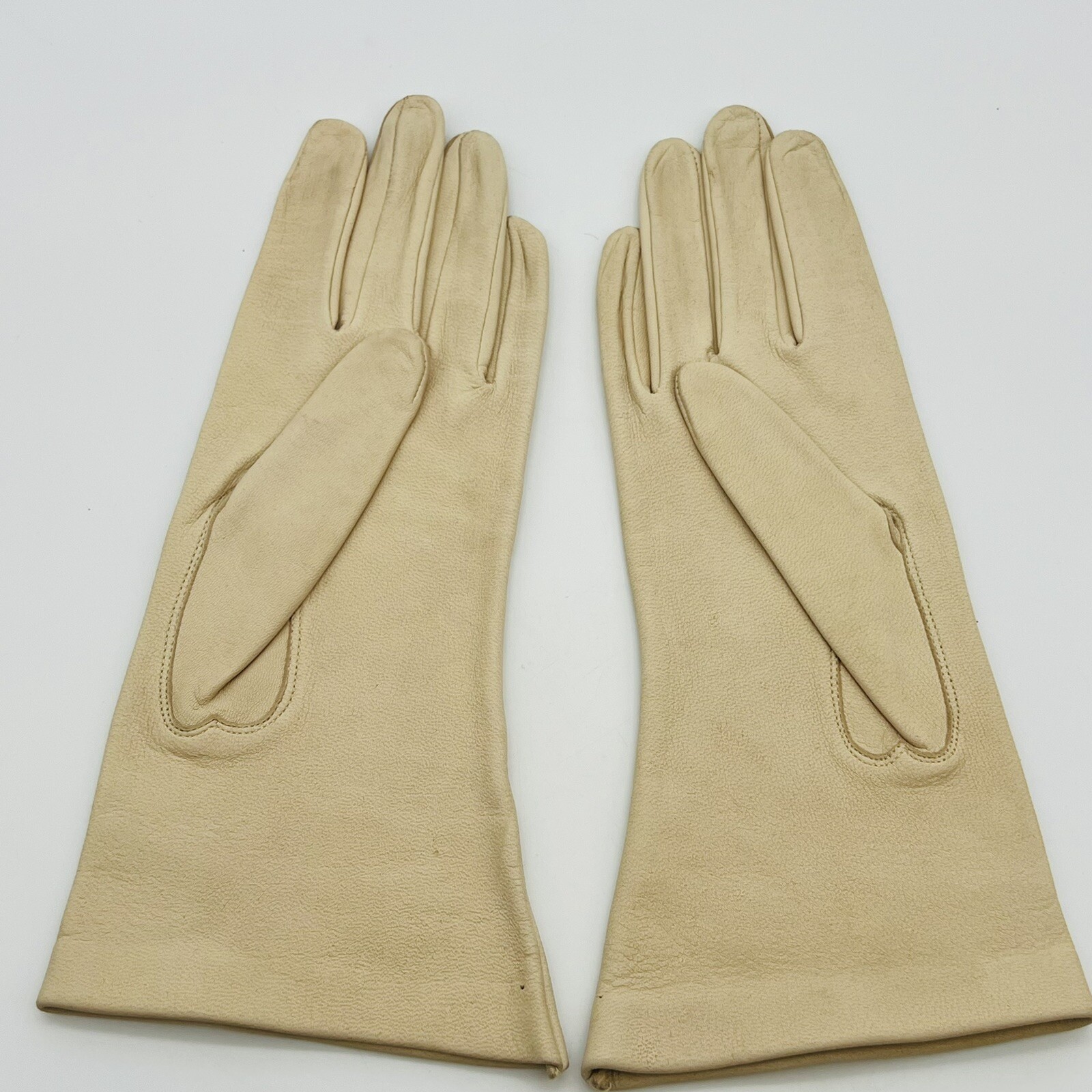 Vtg Women's 7 Ivory Cream Deerskin Leather Gloves Table Cut Embroidered