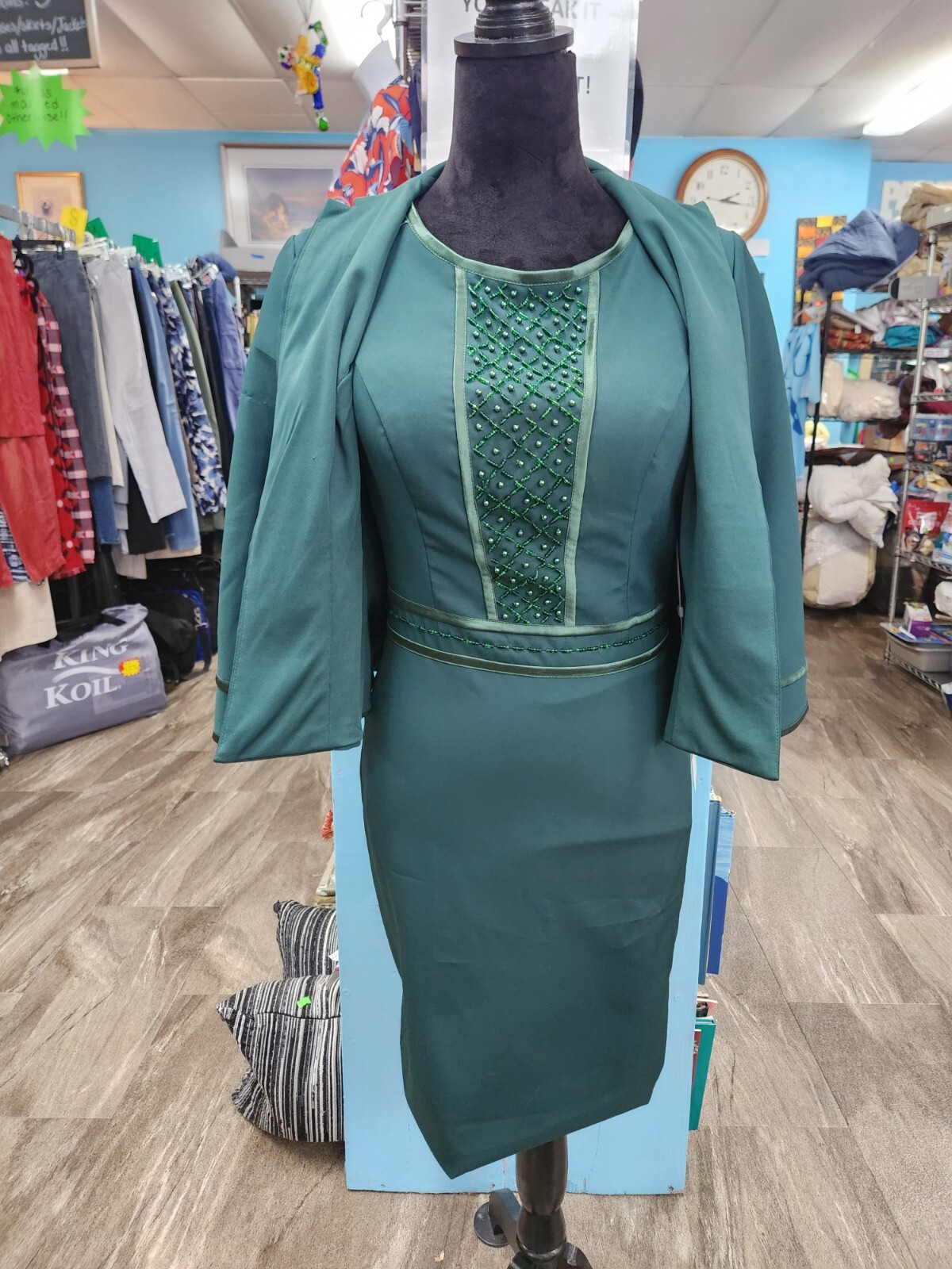 LT Lanting Bride Mother of the 2 pc Green Jacket Dress Size 4 6 See Measurements