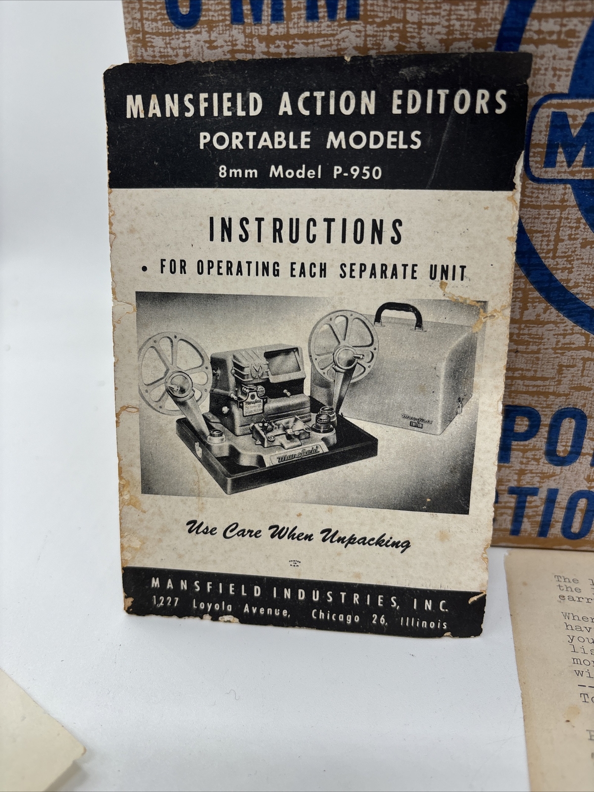 Vintage 1959 Mansfield Mdl 950 8mm Portable Action Editor Original Box Light Wrk