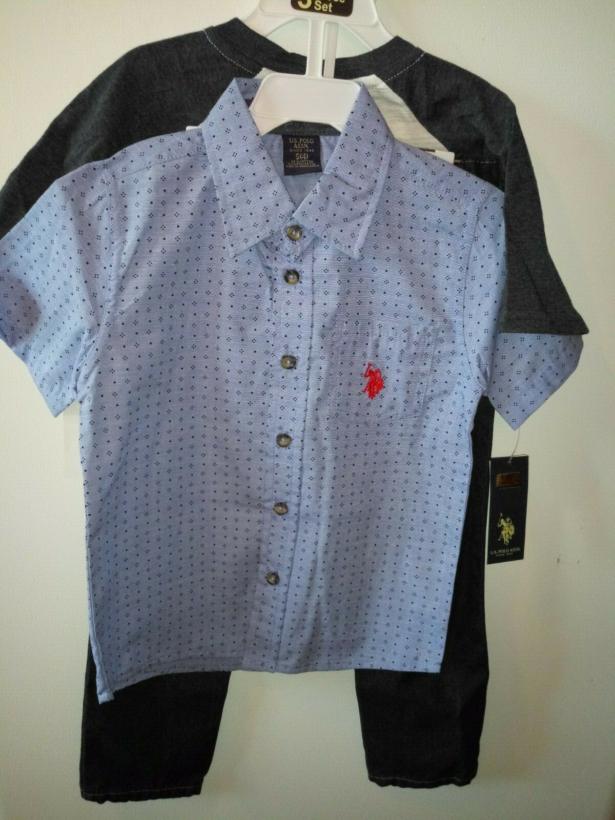 U.S Polo Assn Boys 3PC Set Dress Shirt Casual Shirt Jeans, S 4, M 5, L 6, XL 7