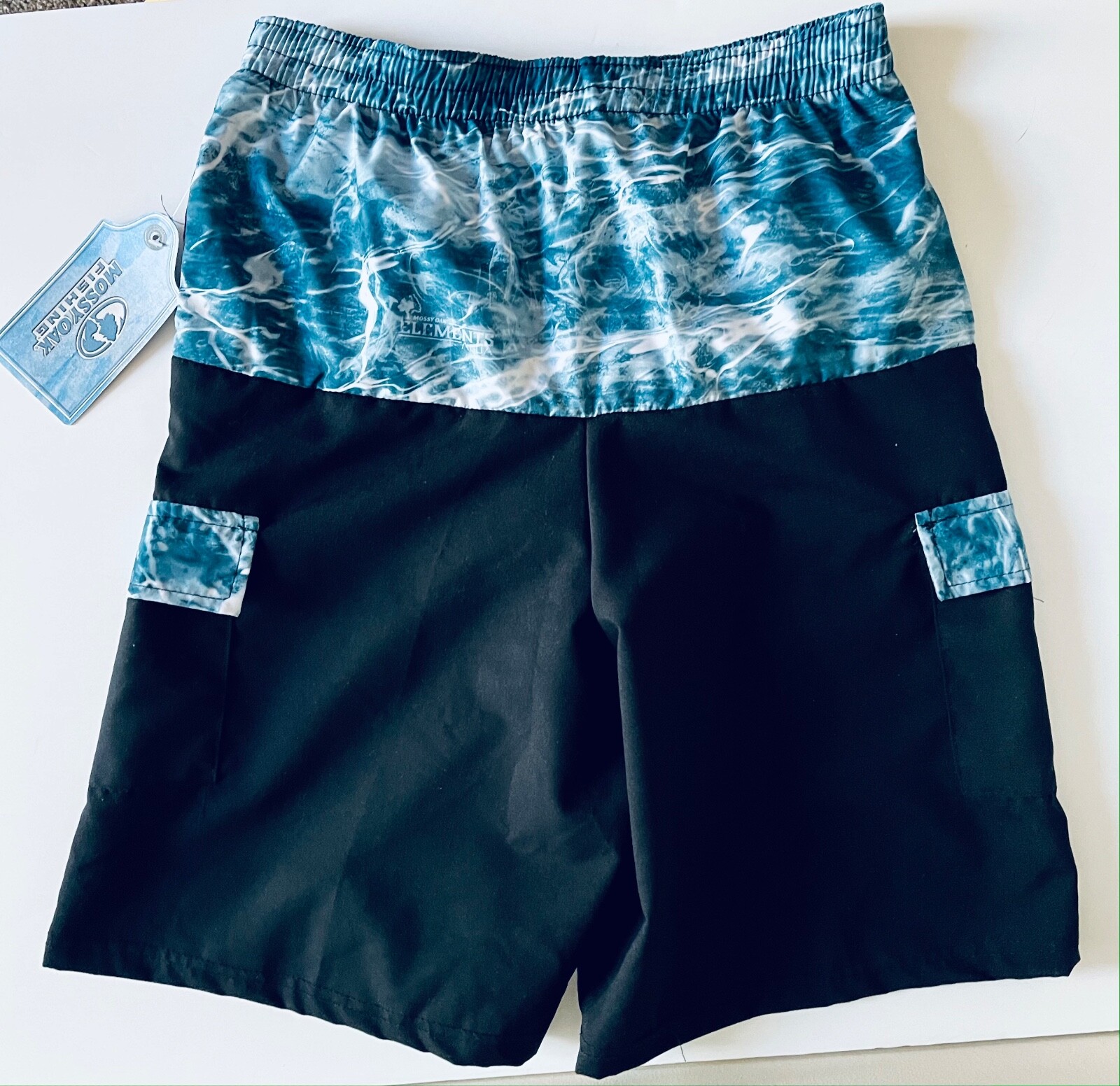Mossy Oak Fishing Swim Shorts NWT Boys Size 14-16 XL Blue-Green Elements Camo