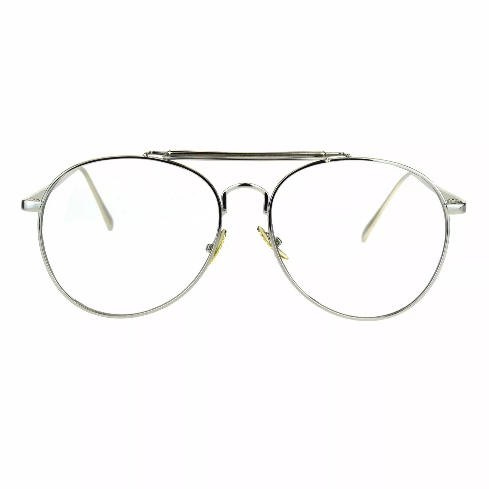 Fashion Clear Lens Glasses Round Pilot Eyeglasses Metal Frame UV400
