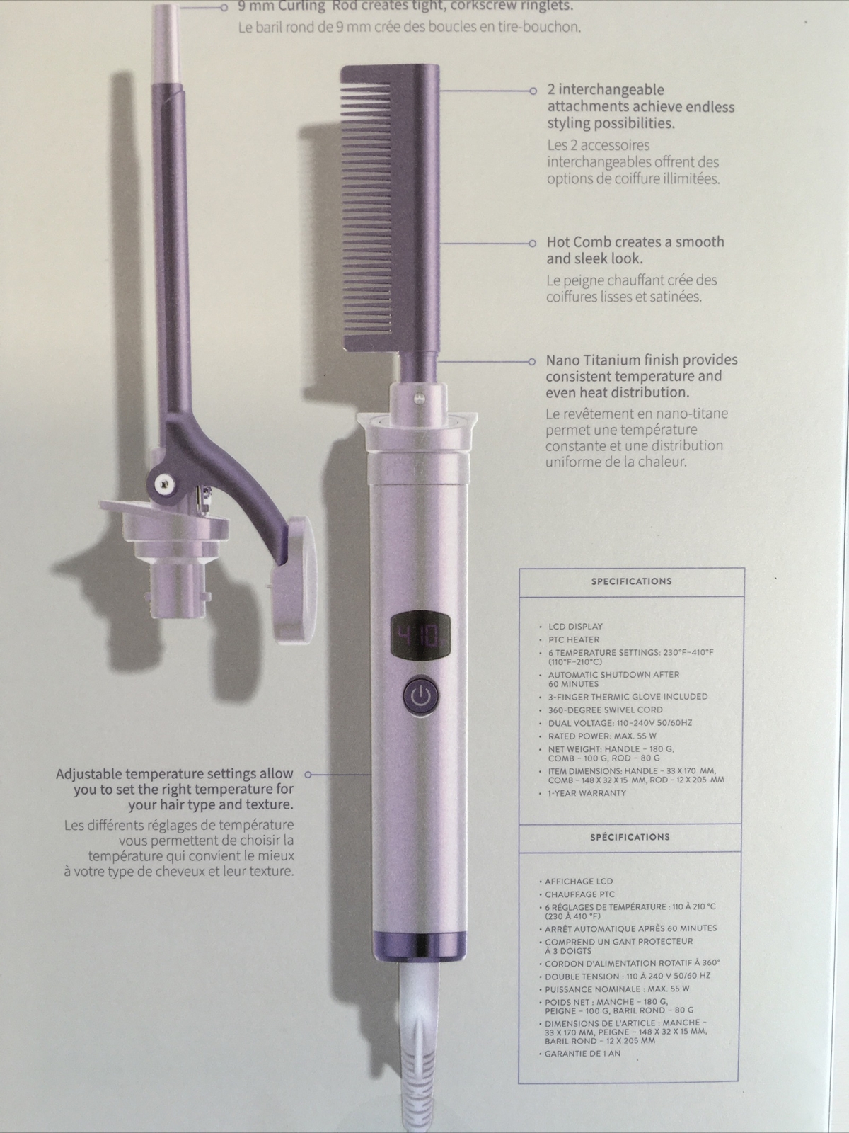 Monat Interchangeable Hot Comb and Rod PLUS Straighten Smooth Brush