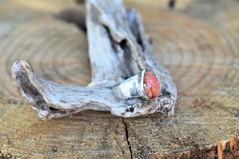 Natural Sunstone Pear Gemstone Ring 925 Sterling Silver Statement Ring Gift