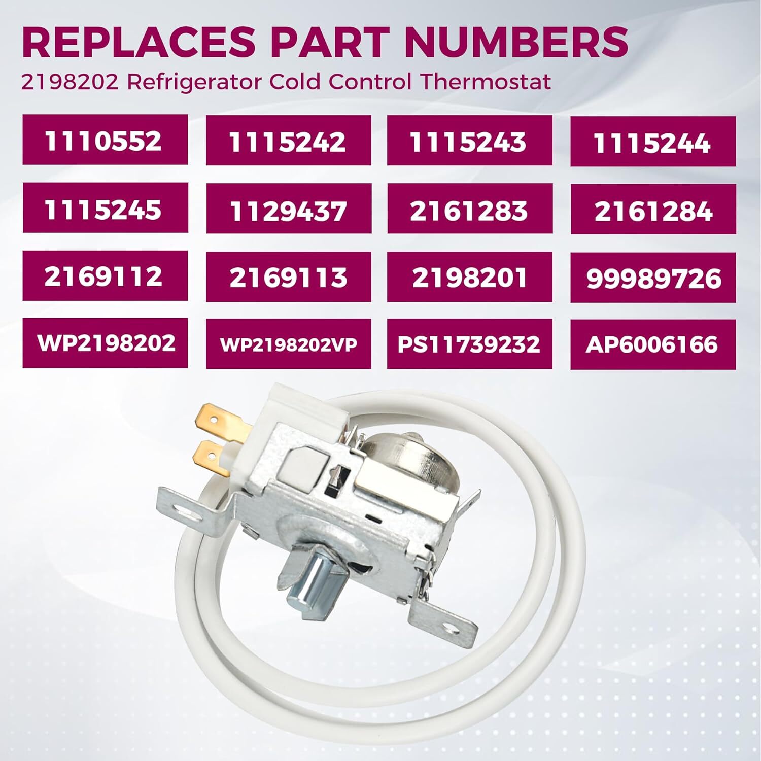 2198202 Refrigerator Cold Control Thermostat Replacement for Whirlpool Kenmore