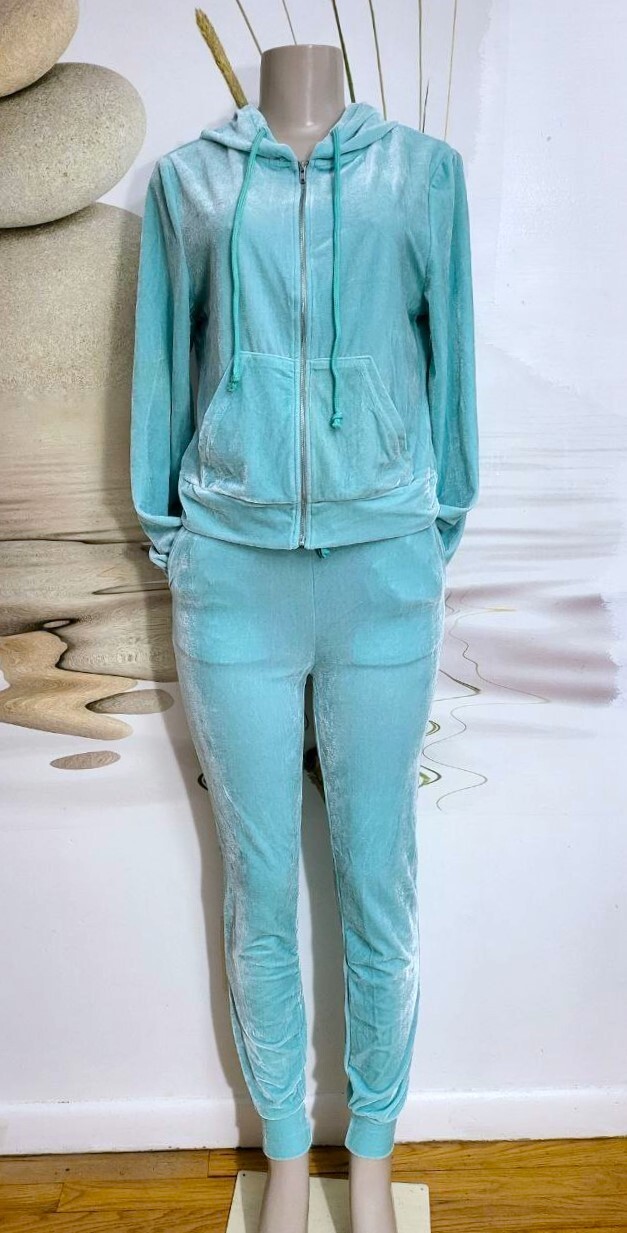 NEW WOMENS LADIES Velour Tracksuit Set 2pc Hoodie and Pants Jogger Size M
