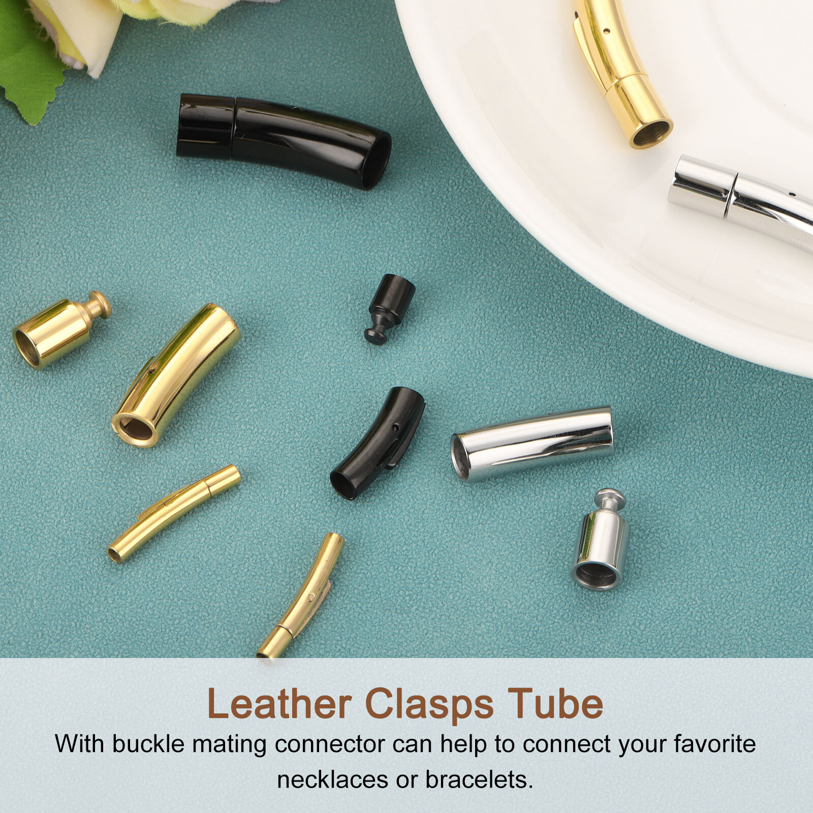 3mm Hole Column Clasps, 4Pcs Leather Cord End Clasp Connectors, Silver 7mm