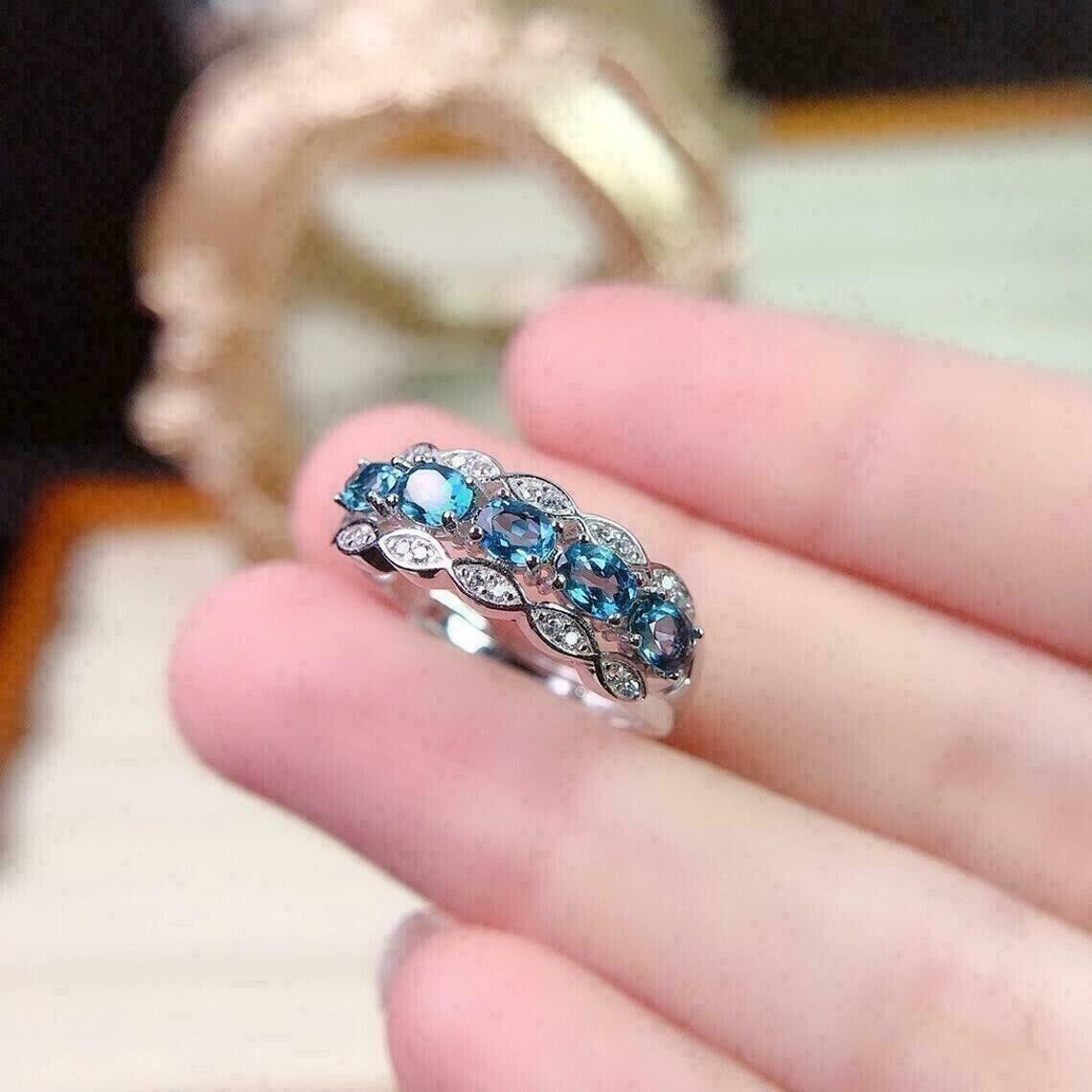 как выглядит Half Eternity Engagement Ring 14K White Gold Plated Oval Lab Created Blue Topaz фото