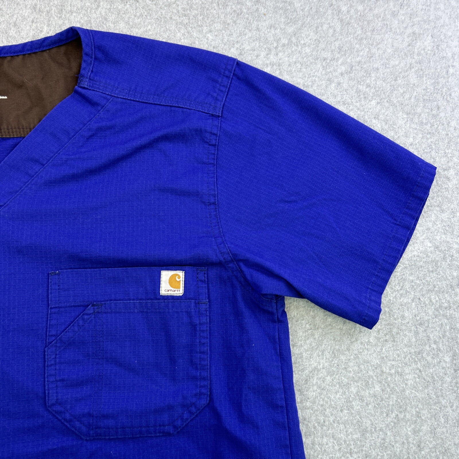 как выглядит Carhartt Scrub Top Mens Small Blue Medical Short Sleeve Shirt Workwear Adult фото