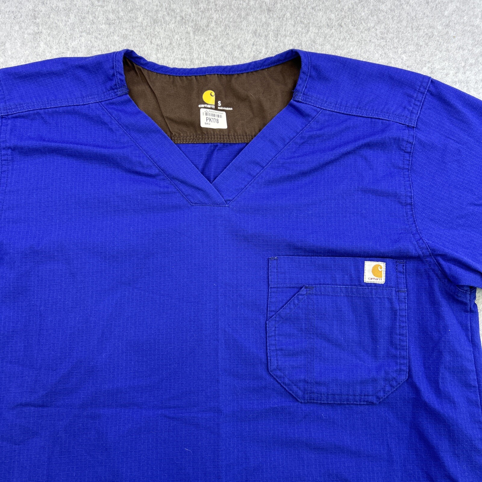 Carhartt Scrub Top Mens Small Blue Medical Short Sleeve Shirt Workwear Adult
