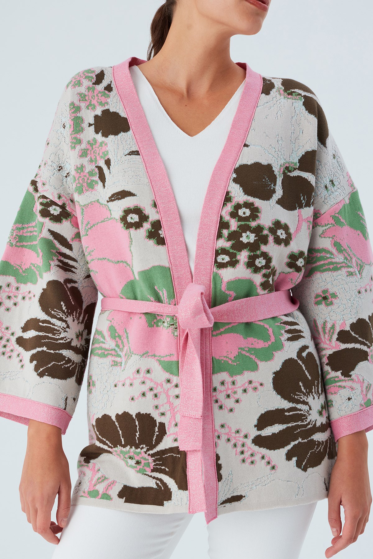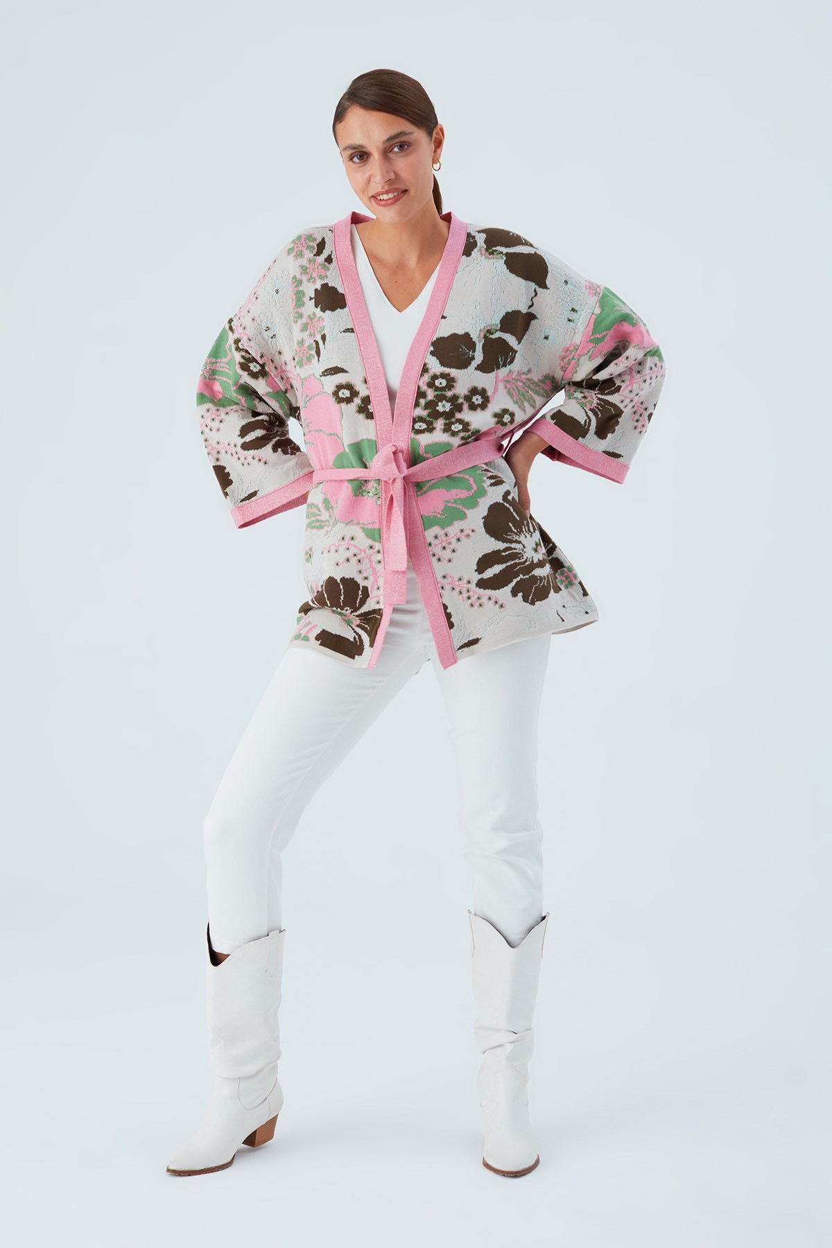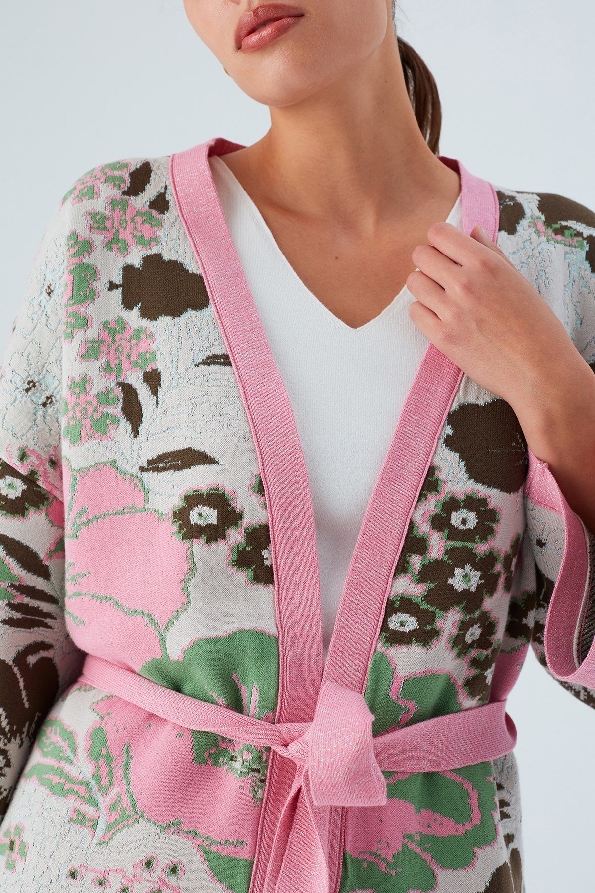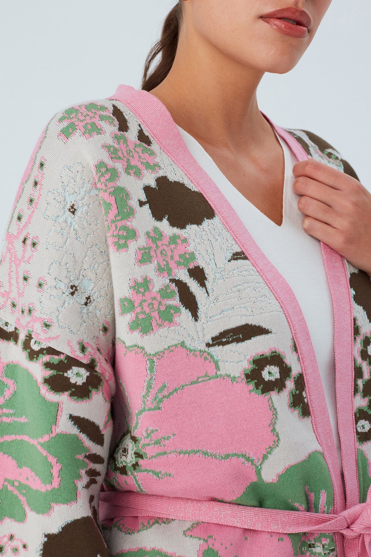 Peraluna Flower Patterned Loose Cut Cotton Women's Knitwear Kimono