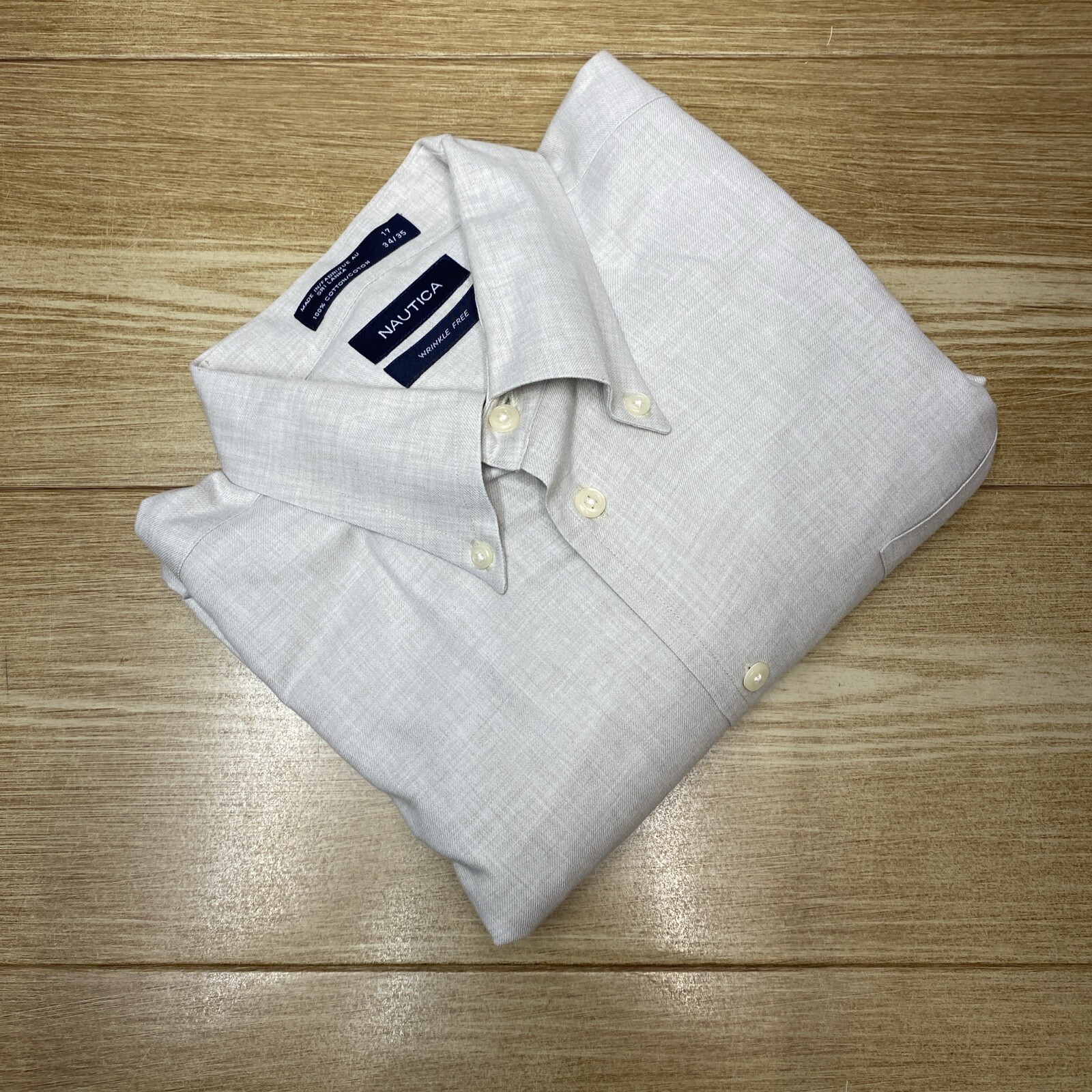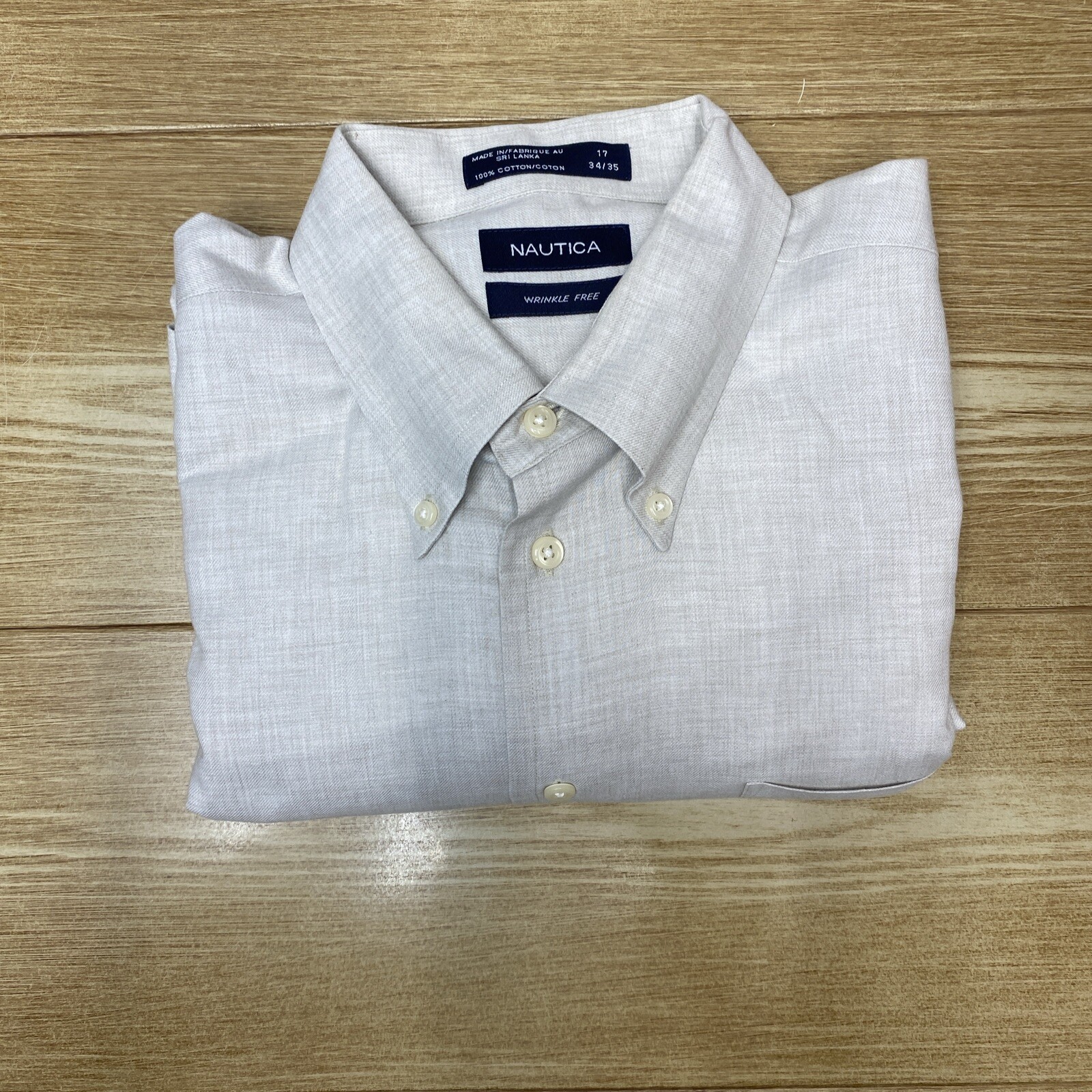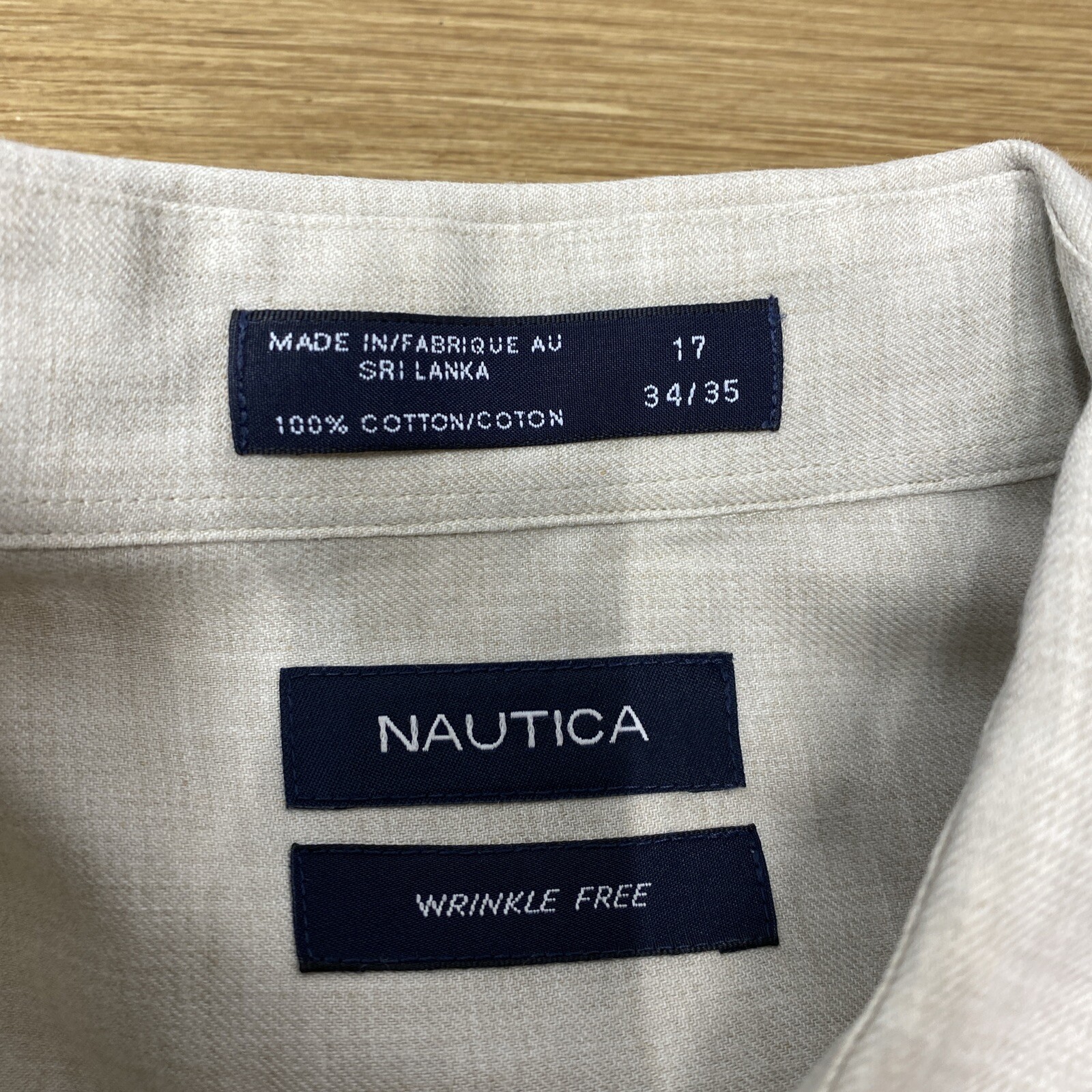 Nautica Formal Shirt Mens 17/34-35 Tan Office Casual Long Sleeve Wrinkle Free